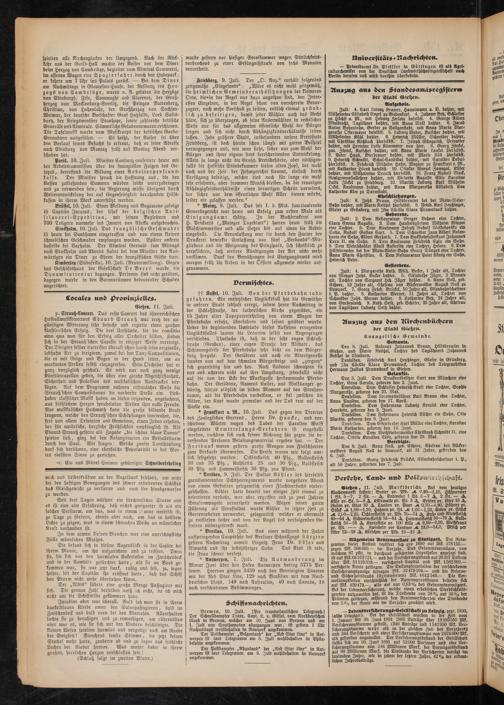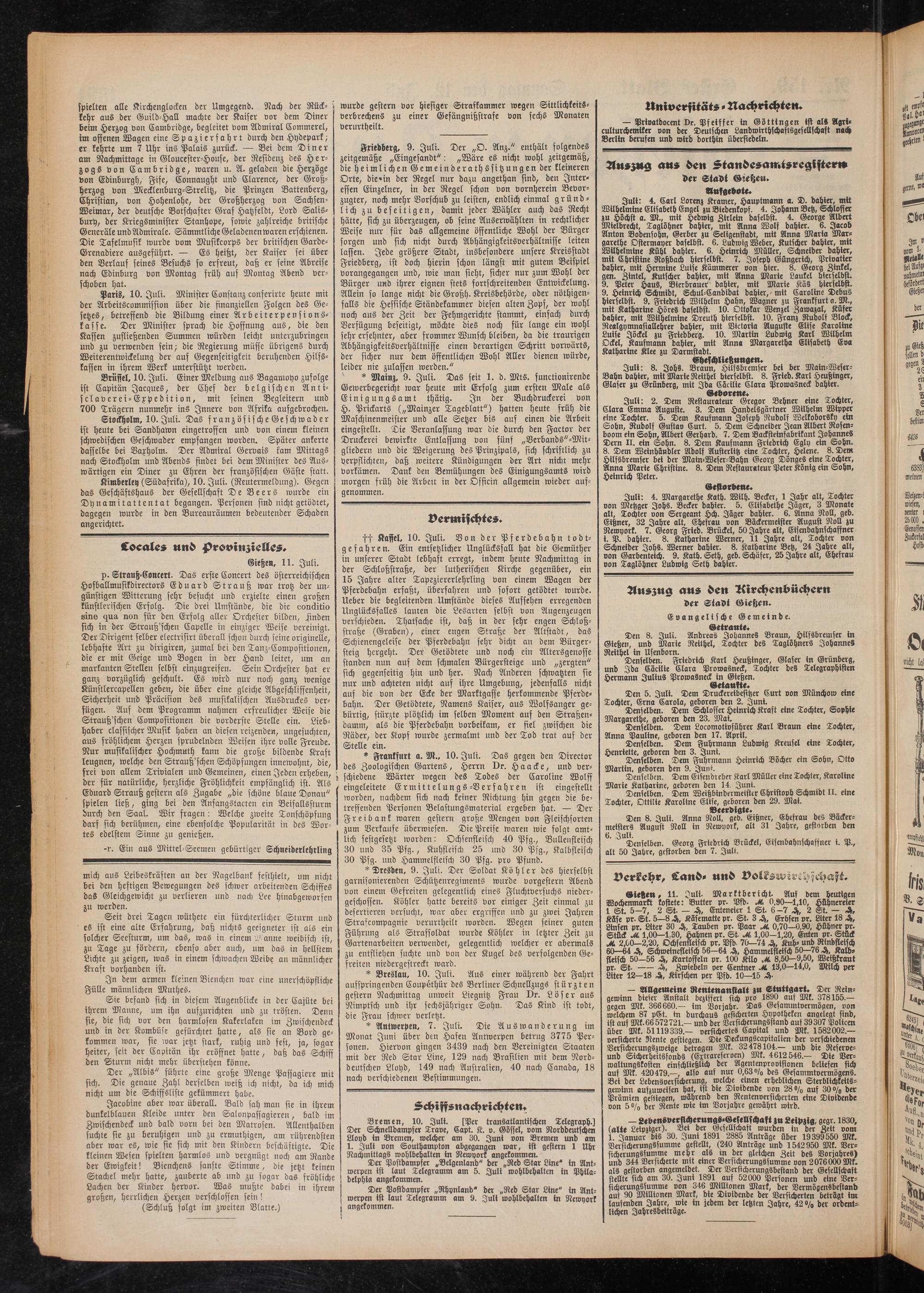 Juli: 2. Dem Restaurateur Gregor Behner eine Tochter, Clara Emma Auguste. 3. Dem Handelsgärtner Wilhelm Wipper eine Tochter. 5. Dem Kaufmann Joseph Rudolf Welkoborsky ein Sohn, Rudolf Gustav Curt. 5. Dem Schneider Jean Albert Rosenboom ein Sohn, Albert Gerhard. 7. Dem Backsteinfabrikant Johannes Dern II. ein Sohn. 8. Dem Kaufmann Friedrich Egly ein Sohn. 8. Dem Weinhändler Adolf Austerlitz eine Tochter, Helene. 8. Dem Hilfsbremser bei der Main-Weser-Bahn Georg Dönges eine Tochter, Anna Marie Christine. 8. Dem Restaurateur Peter König ein Sohn, Heinrich Peter.