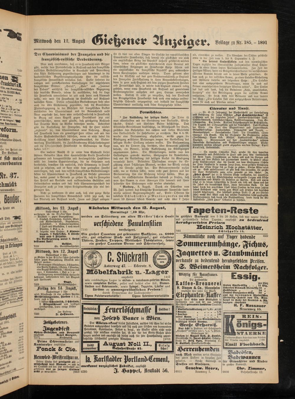 Gießen bei August Noll, H Hansel, Bleichstraße 21, Jacob Härrfer, Ludwig- ftraße 30, Fritz Ggly, Brandplatz 10, L. Kalkhof, Frankfurterstraße.