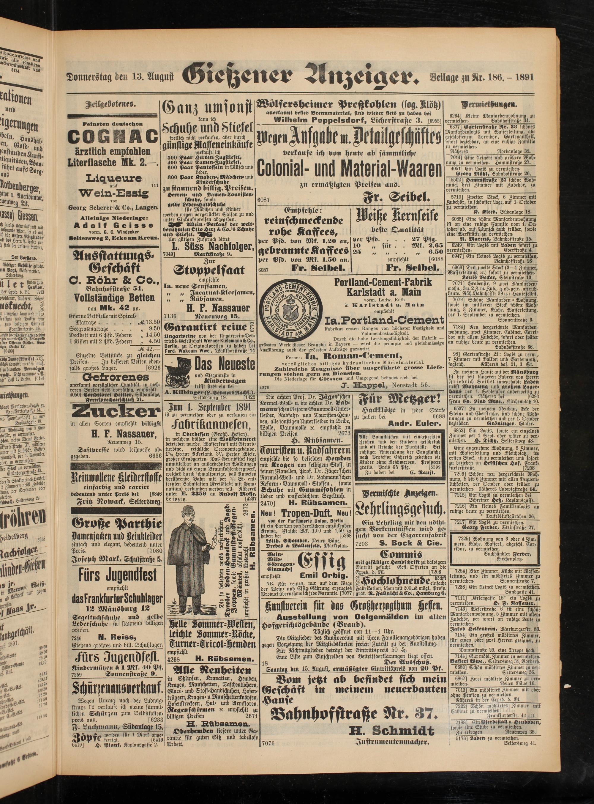Wölfersheimer Preßkohle« (sog. Klötz) anerkannt bestes Brennmaterial, find wieder stets zu haben bei Wilhelm Poppelsdorf, Licherstratze 3. [6955]