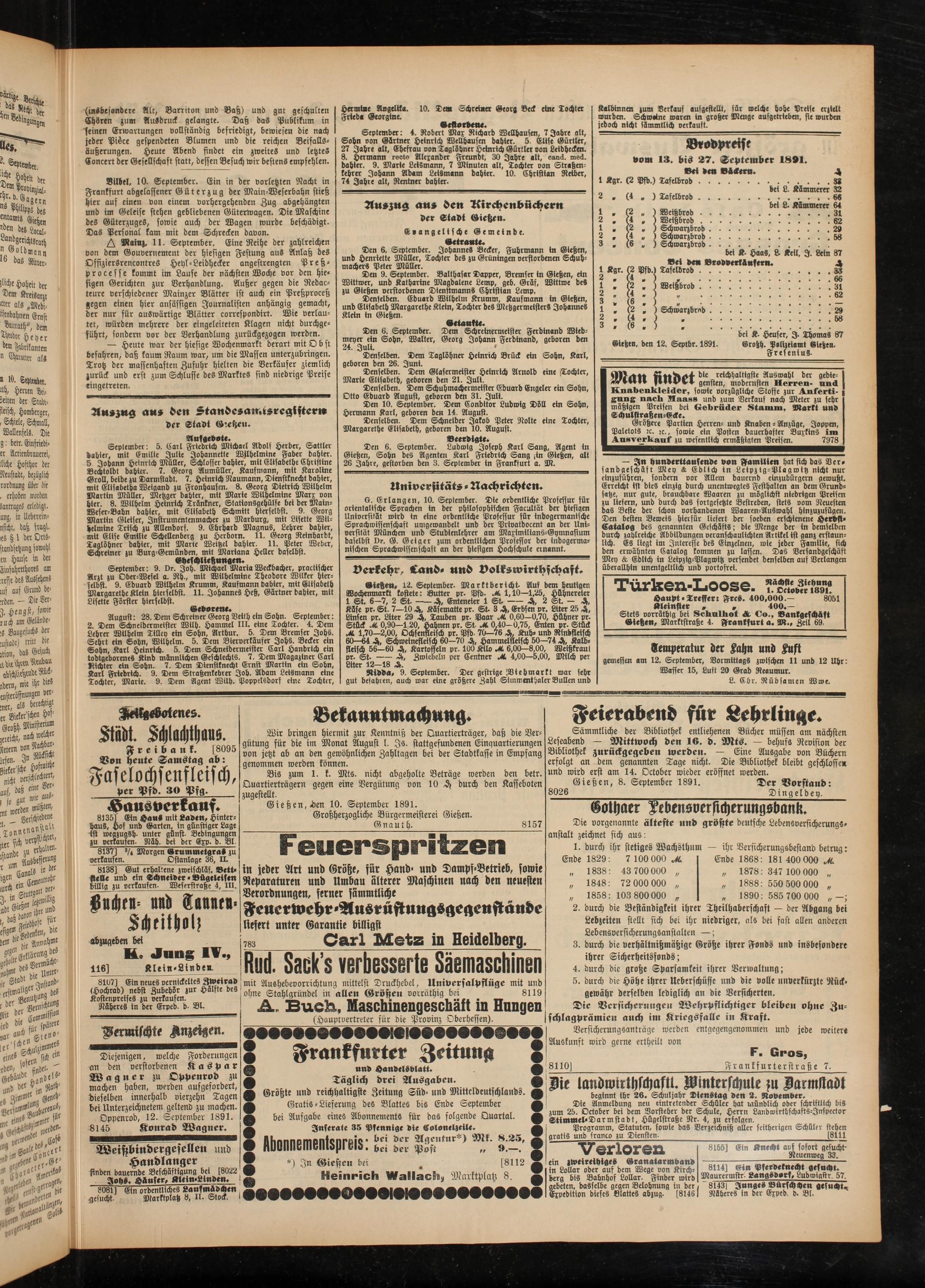 Gießen, den 12. Seplbr. 1891.