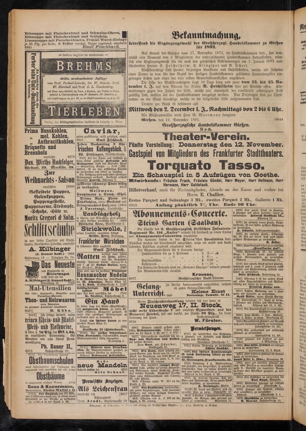 Bekanntmachung, betreffend die Ergänzungswahl der Großherzogl. Handelskammer zu Gießen für 1892.