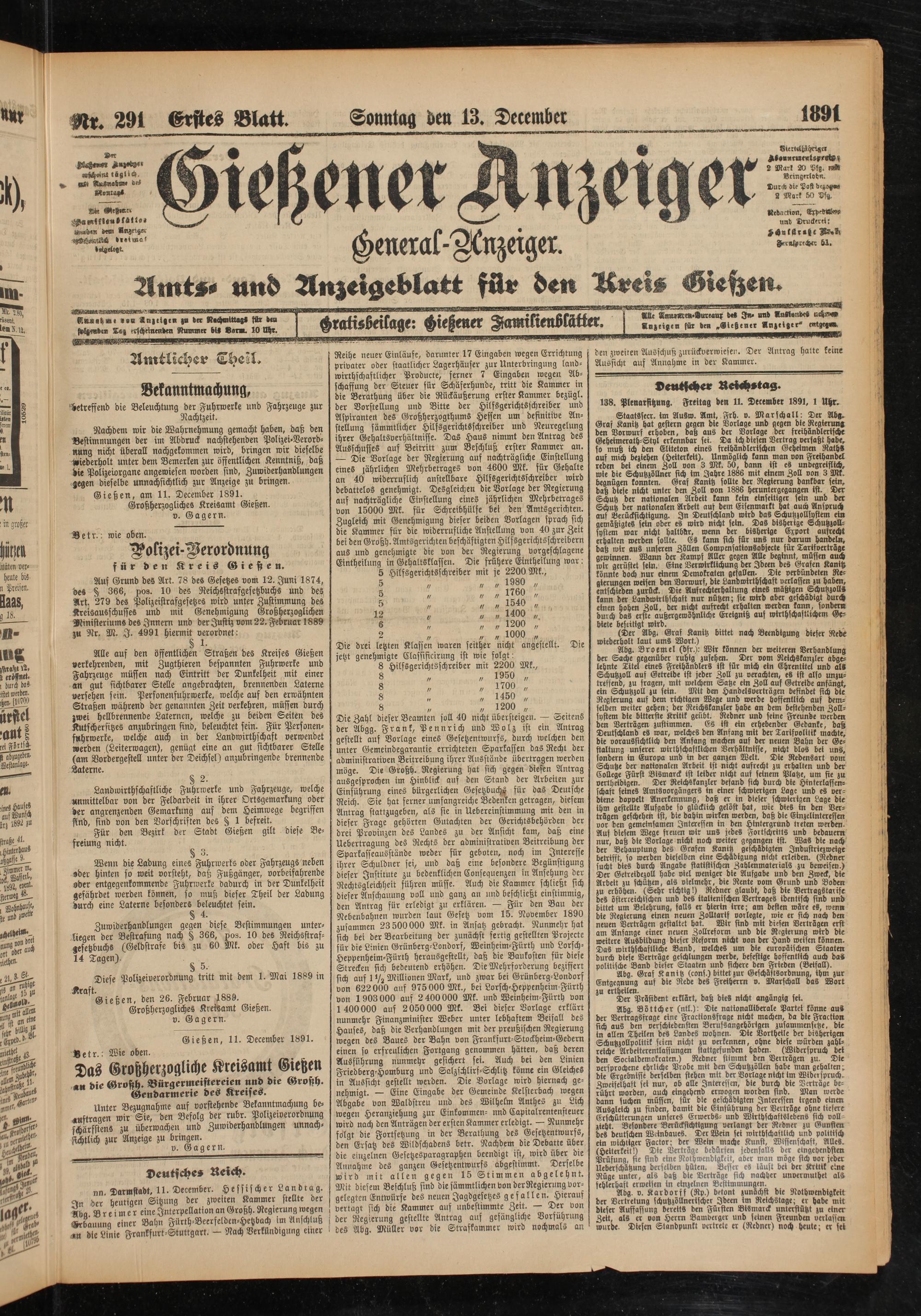 M. 2S1 Erstes Blatt. Sonntag den 13. December 1891