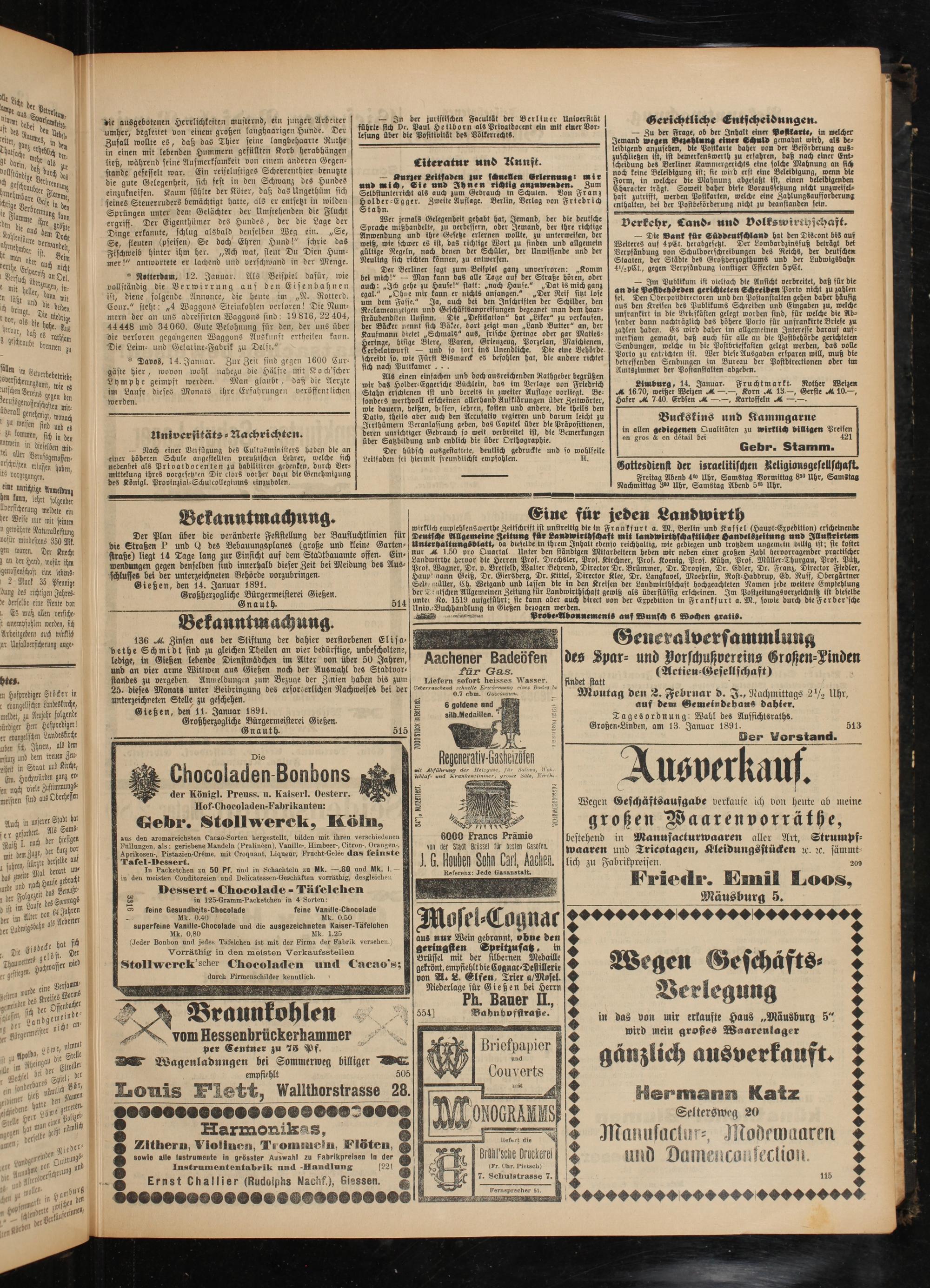 Gießen, den 14. Januar 1891.