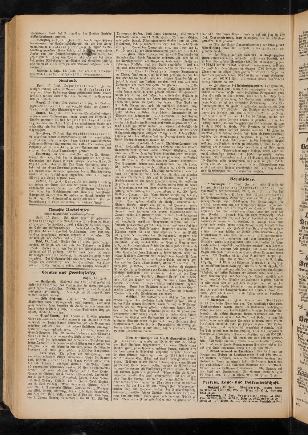 Paris, 13 Juni. Deputirten kämme r. In der heutigen Sitzung nahm die Kammer die Zuckersteuervorlage an, indem sie den vom Senat gestrichenen Artikel wieder herstellte, welcher einen Abfall von 15 pCt. für die Campagne 1890/91 erlaubt.