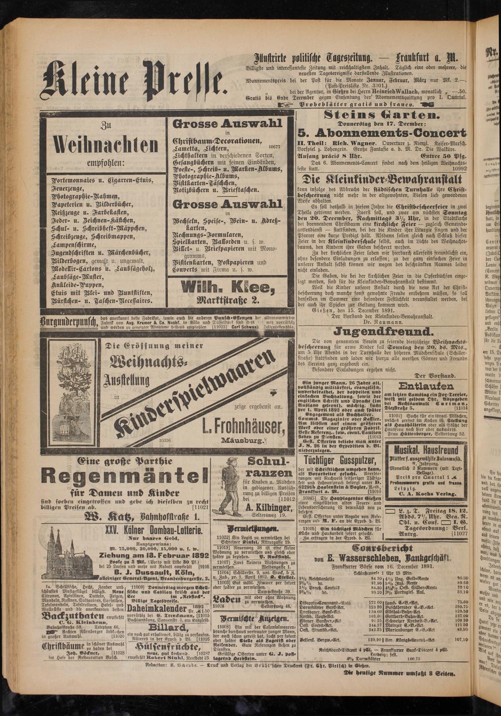 Gießen, den 15. December 1891.