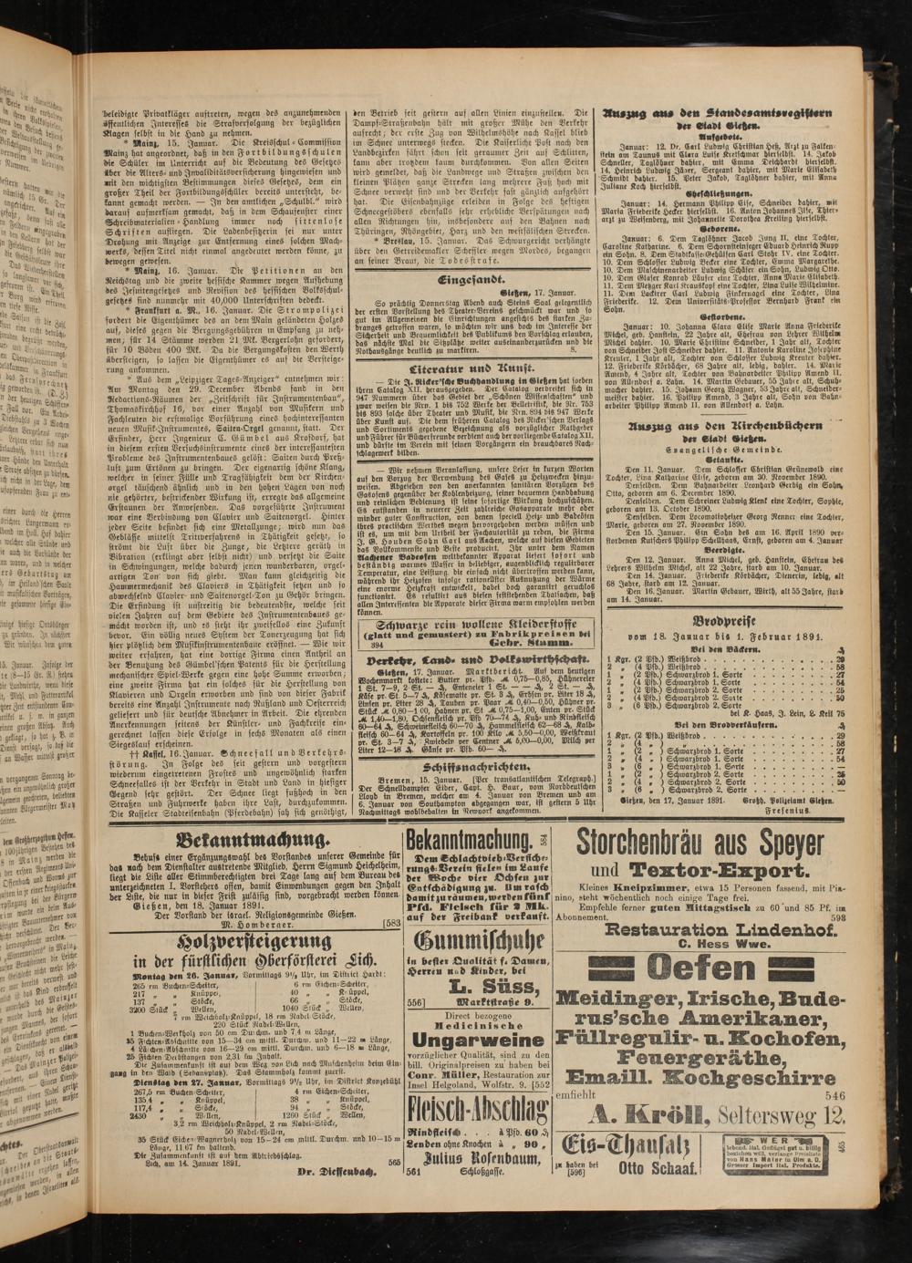 Gieße«, den 17. Januar 1891. Großh. Polizeiamt Gießen.