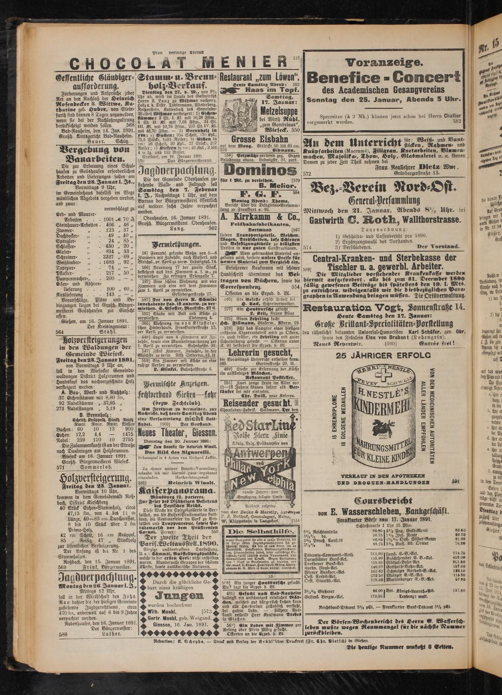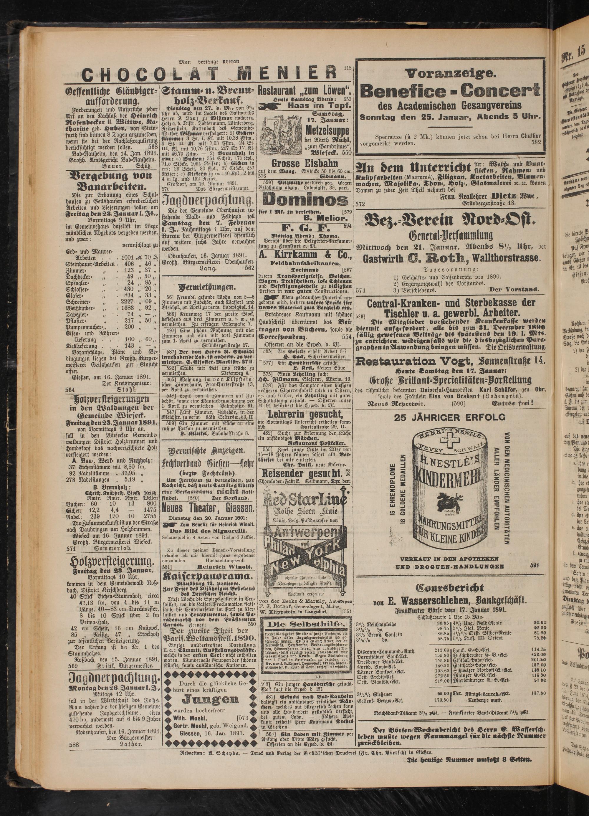 Wieseck am 16. Januar 1891.