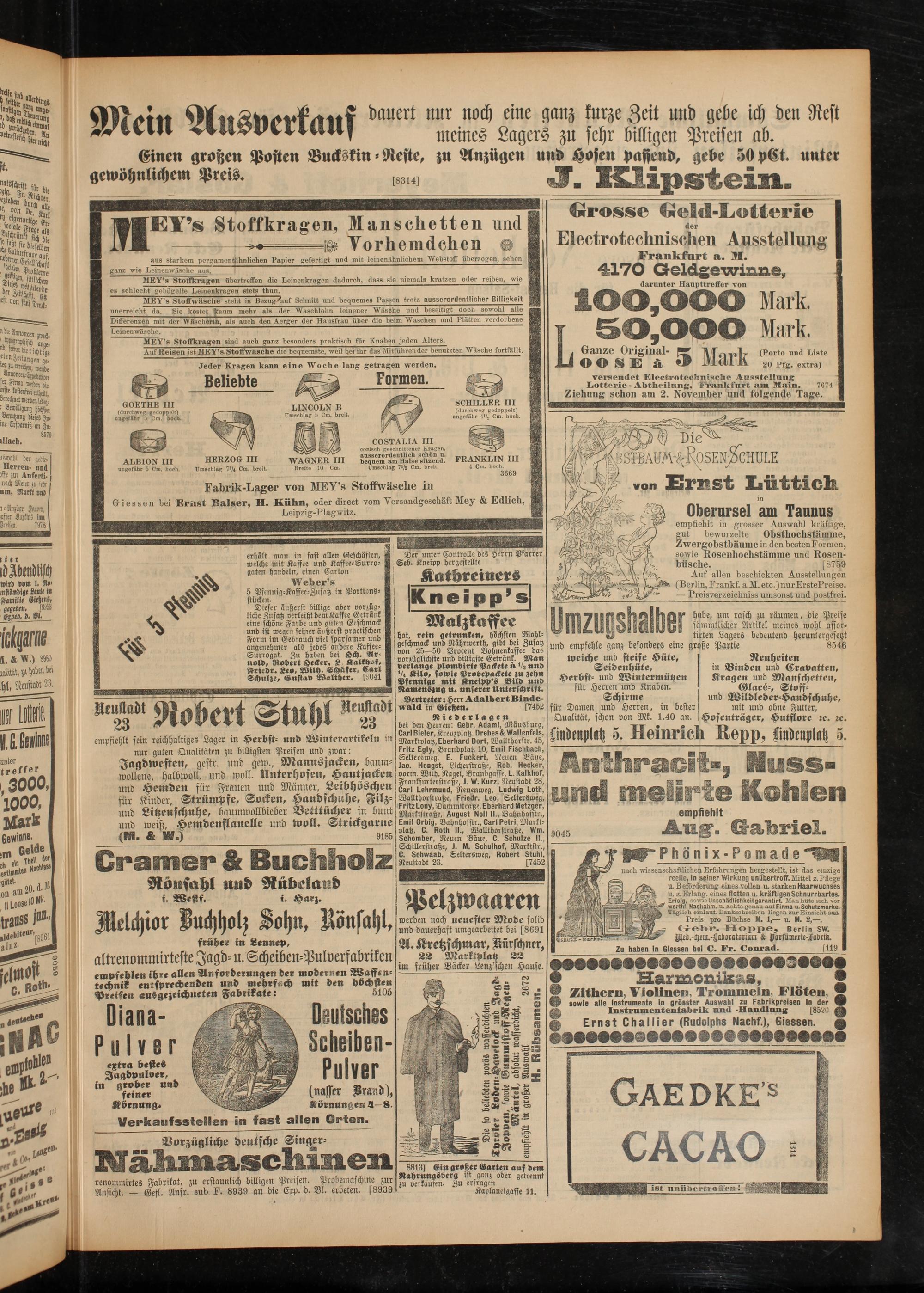 Giessen bei Ernst Balser, H. Kühn, oder direct vom Versandgeschäft Mey & Edlich,