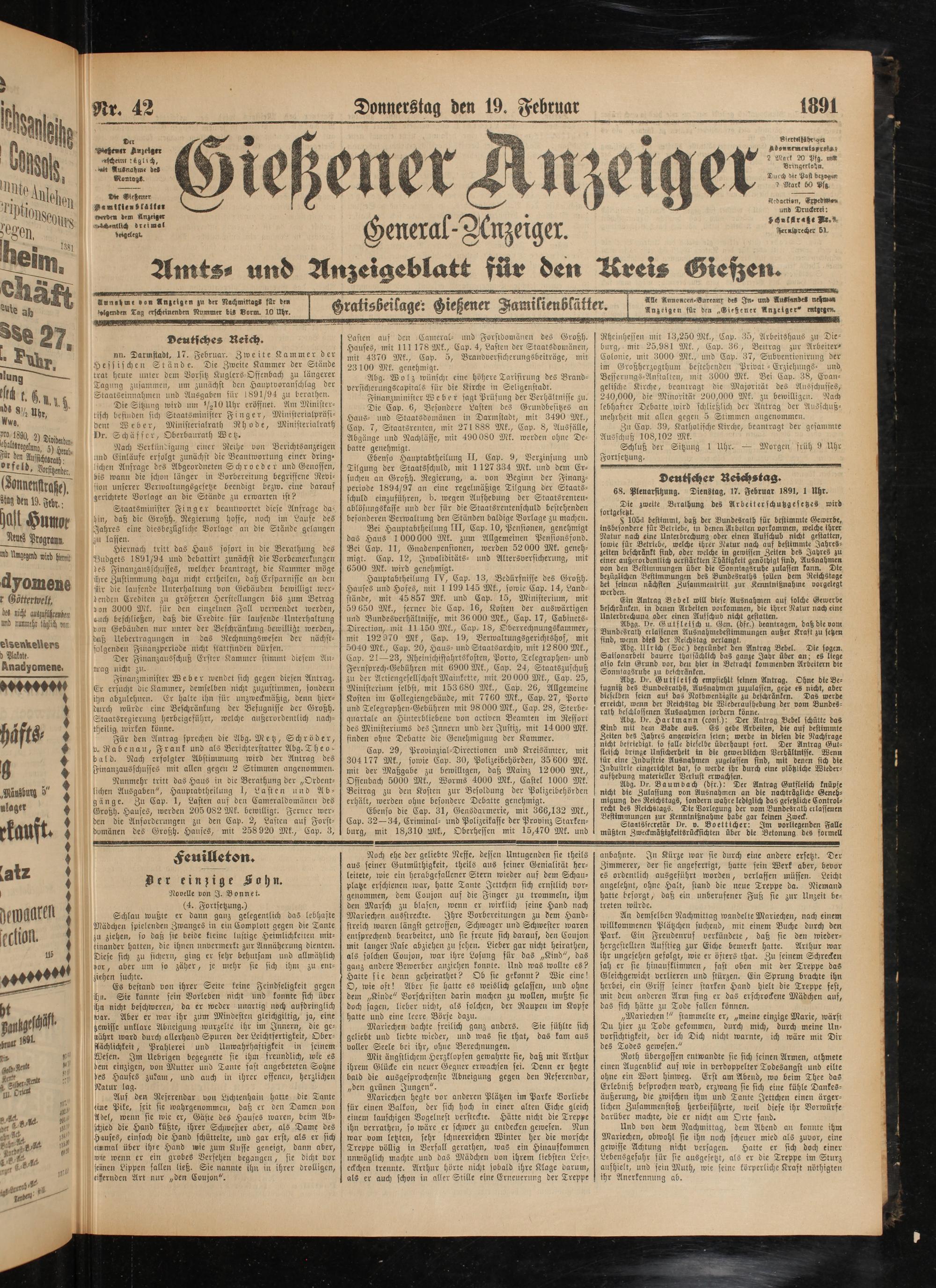 nn. Darmstadt, 17. Februar. Zweite Kammer der Hessischen Stände. Die Zweite Kammer der Stände trat heute unter dem Borsitz Kuglers-Offenbach zu längerer Tagung zusammen, um zunächst den Hauptvoranschlag der Staatseinnahmen und Ausgaben für 1891/94 zu berathen.