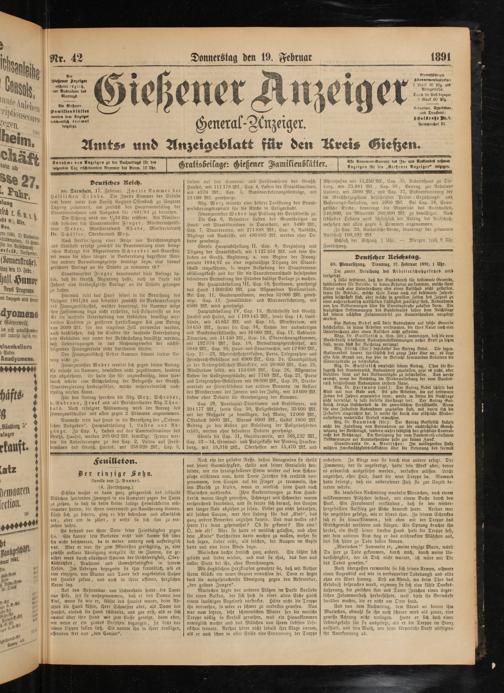 Alle Annoncen-Bureau^ deS In- und Nu-landes nehm« Anzeigen für den „Gießener Anzeiger- ratgegcx