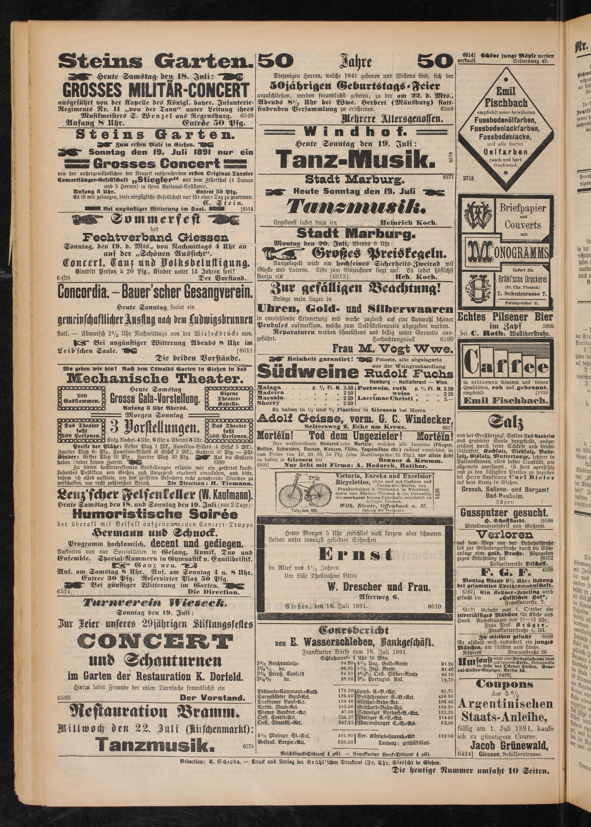 Frankfurter Börse vom 18. Juli 1891. Schlutzcou-^ 1 Uhr 15 Min.