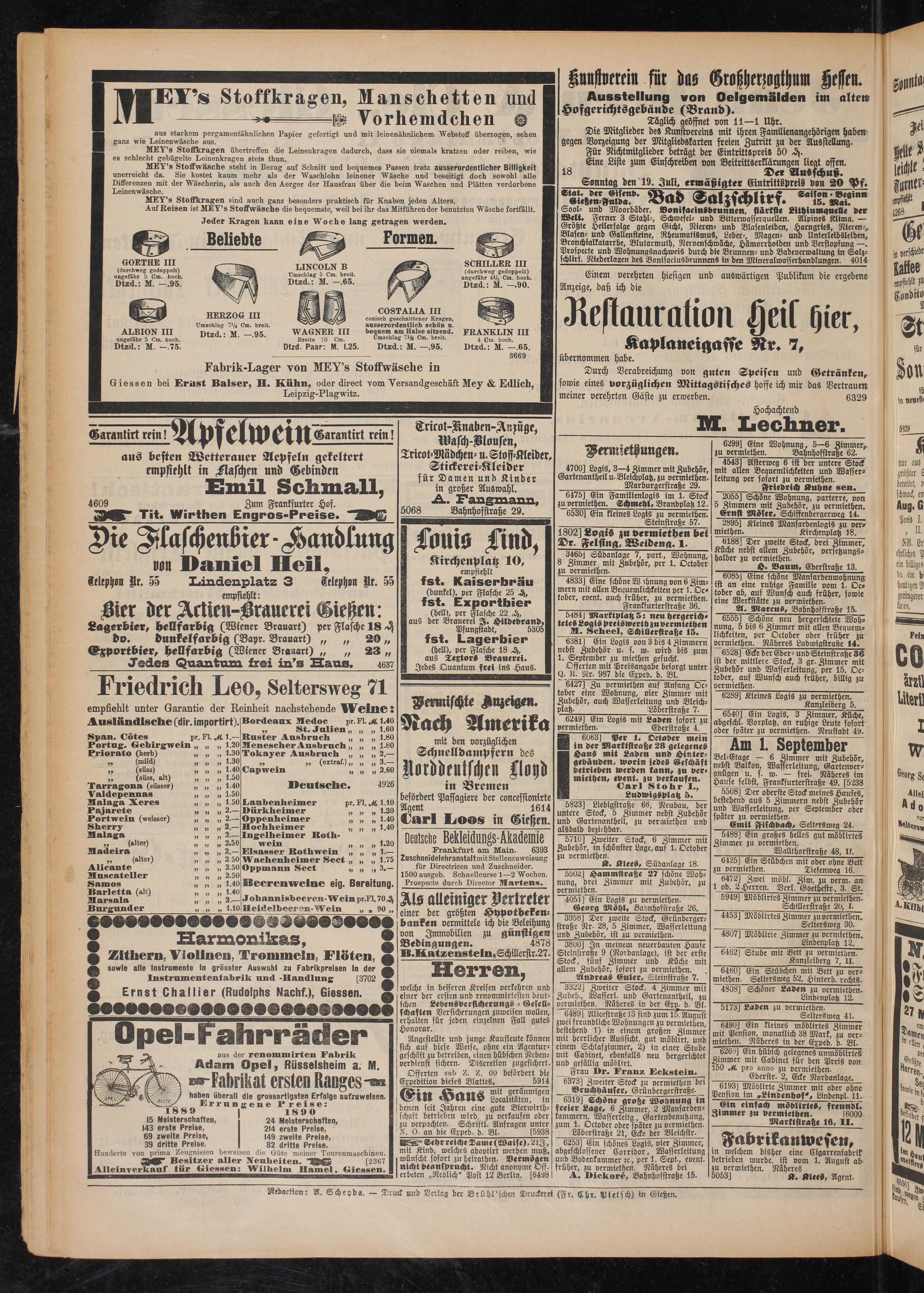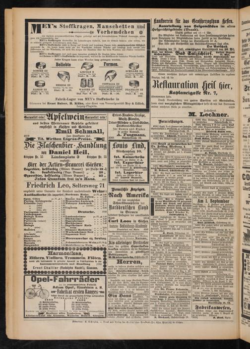 Redaction: A. Scheyd«. — Druck und Verlag der Brühl'schm Druckerei (Fr. Chr. Pietsch) in Gießen.
