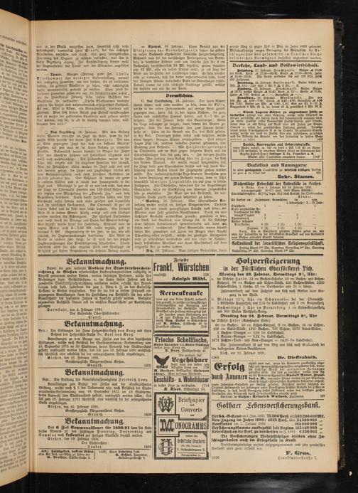 Anmeldungen zu wm Bezüge von Zinsen aus den oben bezeichneten Stiftungen, welche nach Beschluß der Stadtverordneten-Versammlung vom 16. September 1875 an 30 Stadtarme, deren Auswahl dem Stadtvorstand zusteht, ausbezahlt werden sollen, sind bis zum 28. Februar 1891 einschließlich schriftlich oder mündlich bei der unterzeichneten Stelle einzubringen.