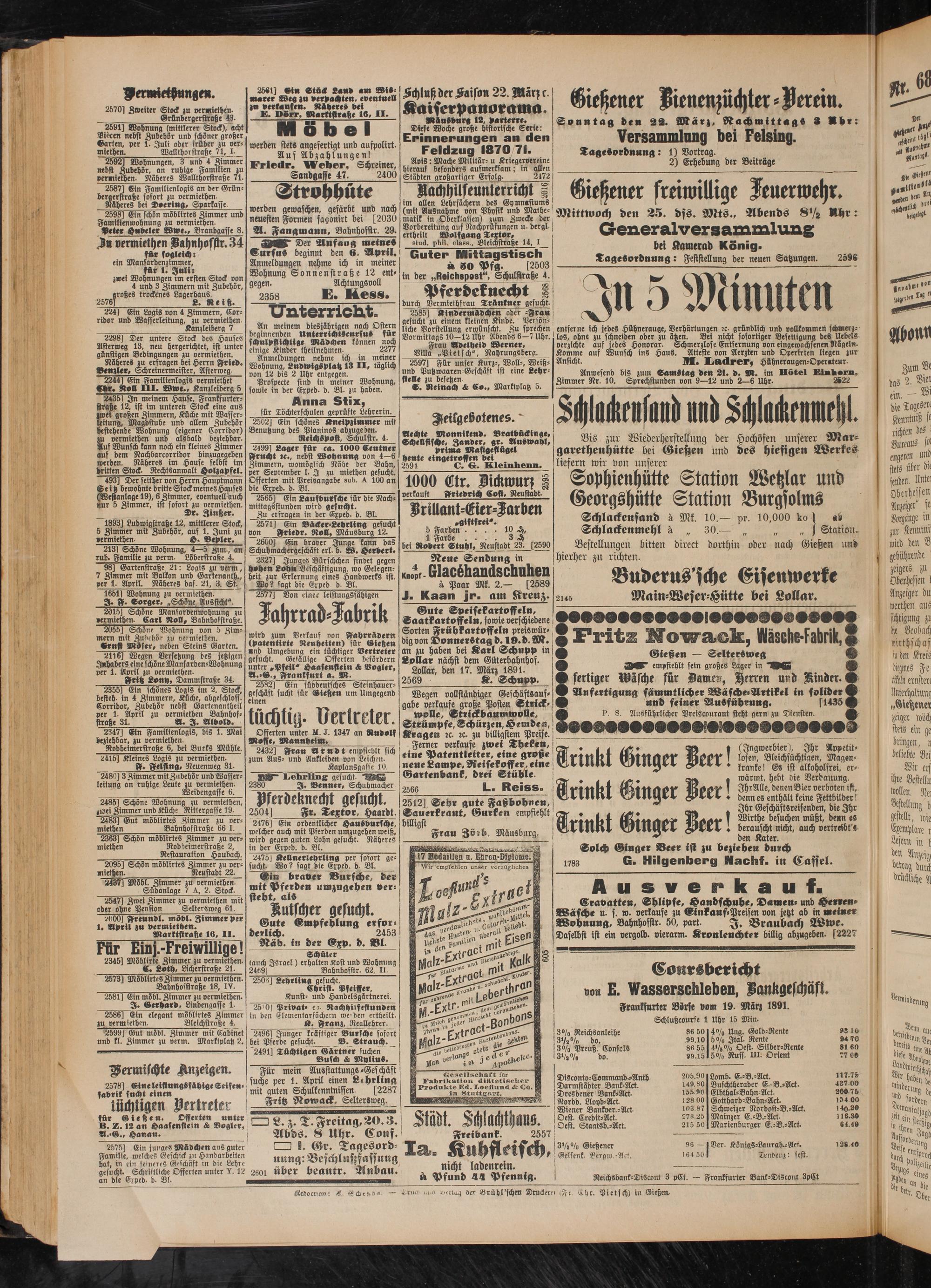 für Gießen. Offerten uuter .