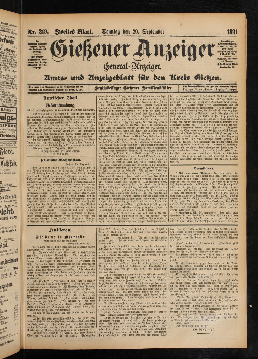 Nr. 219. Zweites Blatt. Sonntag den 20. September