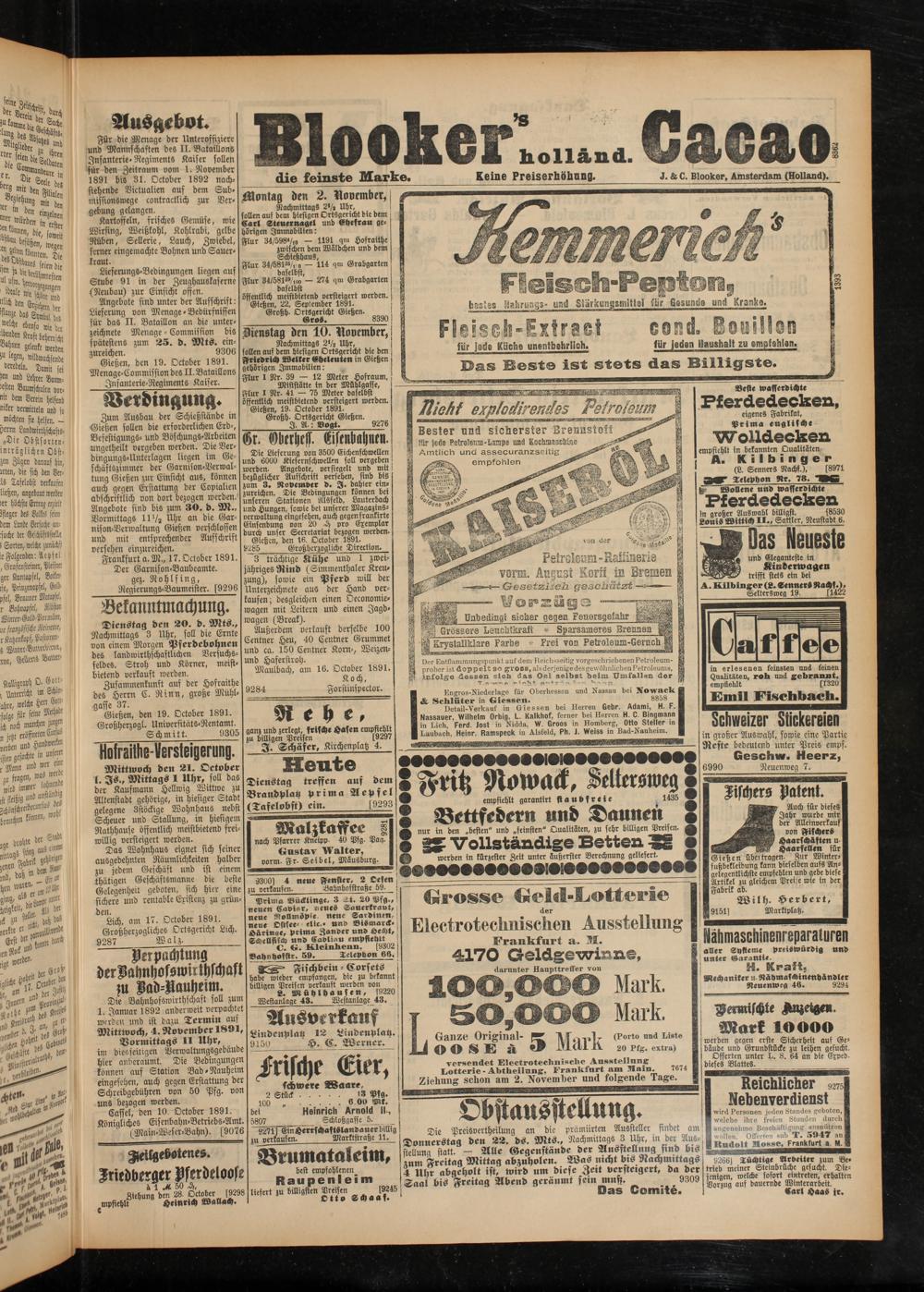 Gießen, den 16. October 1891. 9285 Grobherzogliche Direction.