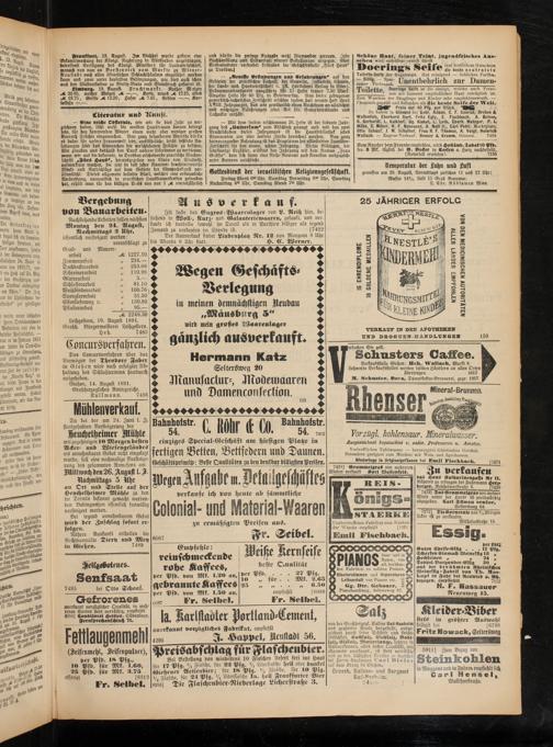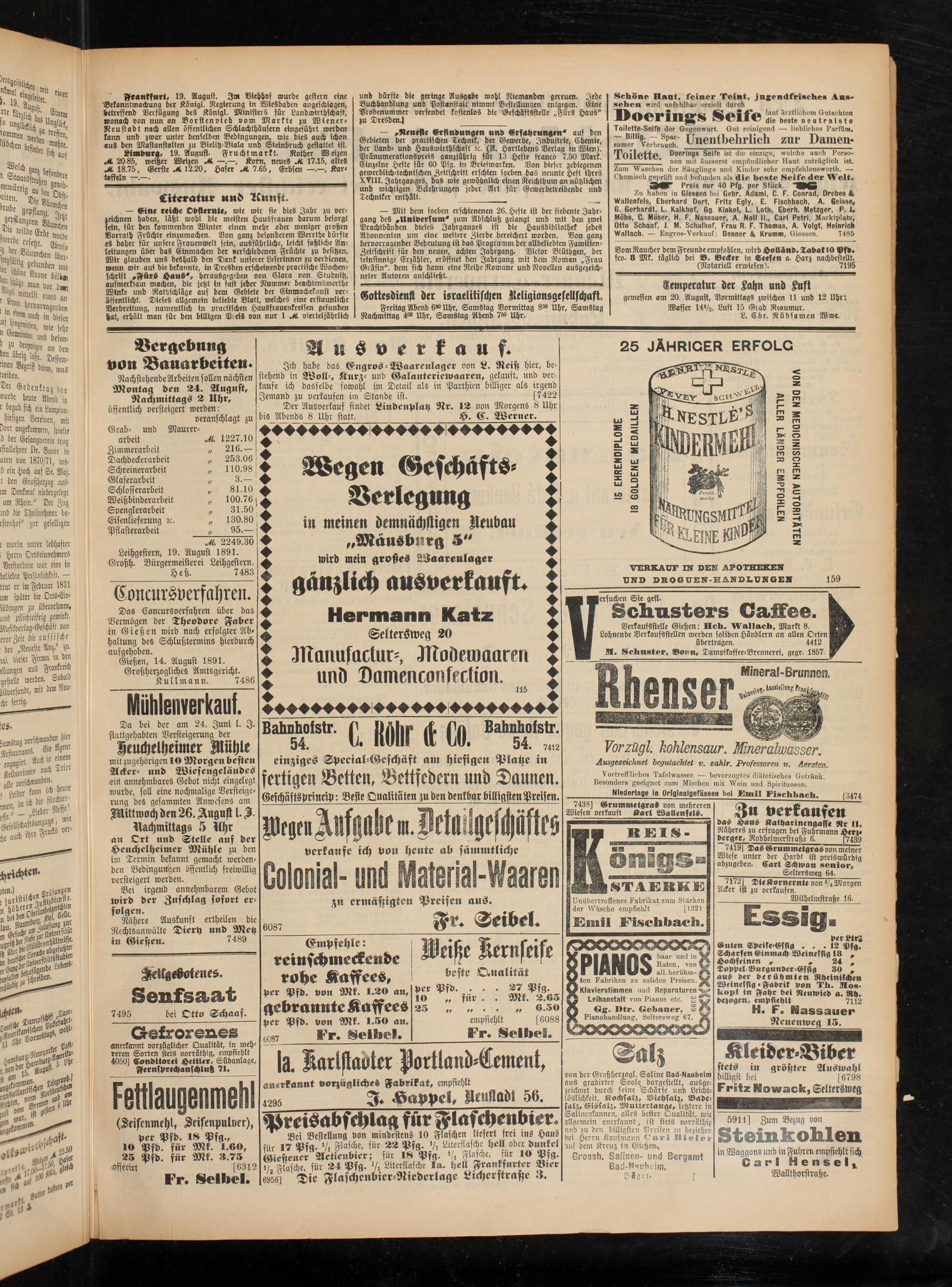 Zu haben in Giessen bei Gebr. Adami, C. F. Conrad, Drebes & Wallenfels, Eberhard Dort, Fritz Egly, E. Fischbach, A. Geisse, G. Gerhardt, L. Kalkhof, Gg. Kinkel, L. Loth, Eberh. Metzger, P. J. Mobs, C. Möser, H. F. Nassauer, A. Noll II., Carl Petri. Marktplatz, Otto Schaaf, J. M. Schulhof, Frau R. F. Thomas, A. Voigt, Heinrich Wallach. — Engros-Verkauf: Benner & Krumm, Giessen. 7485