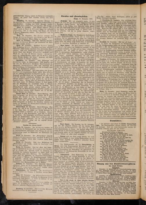 November: 14. Philipp Lahr III., Dampfmolkereibesitzer dahier, mit Luise Wilhelmine Elisabeth Hoffmann von hier. 17. Georg Appel, Spenglermeister dahier, mit Johannette Marte Moll von hier. 19. Philipp Blum, Kutscher dabier, mit Elise Frank hterselbst.
