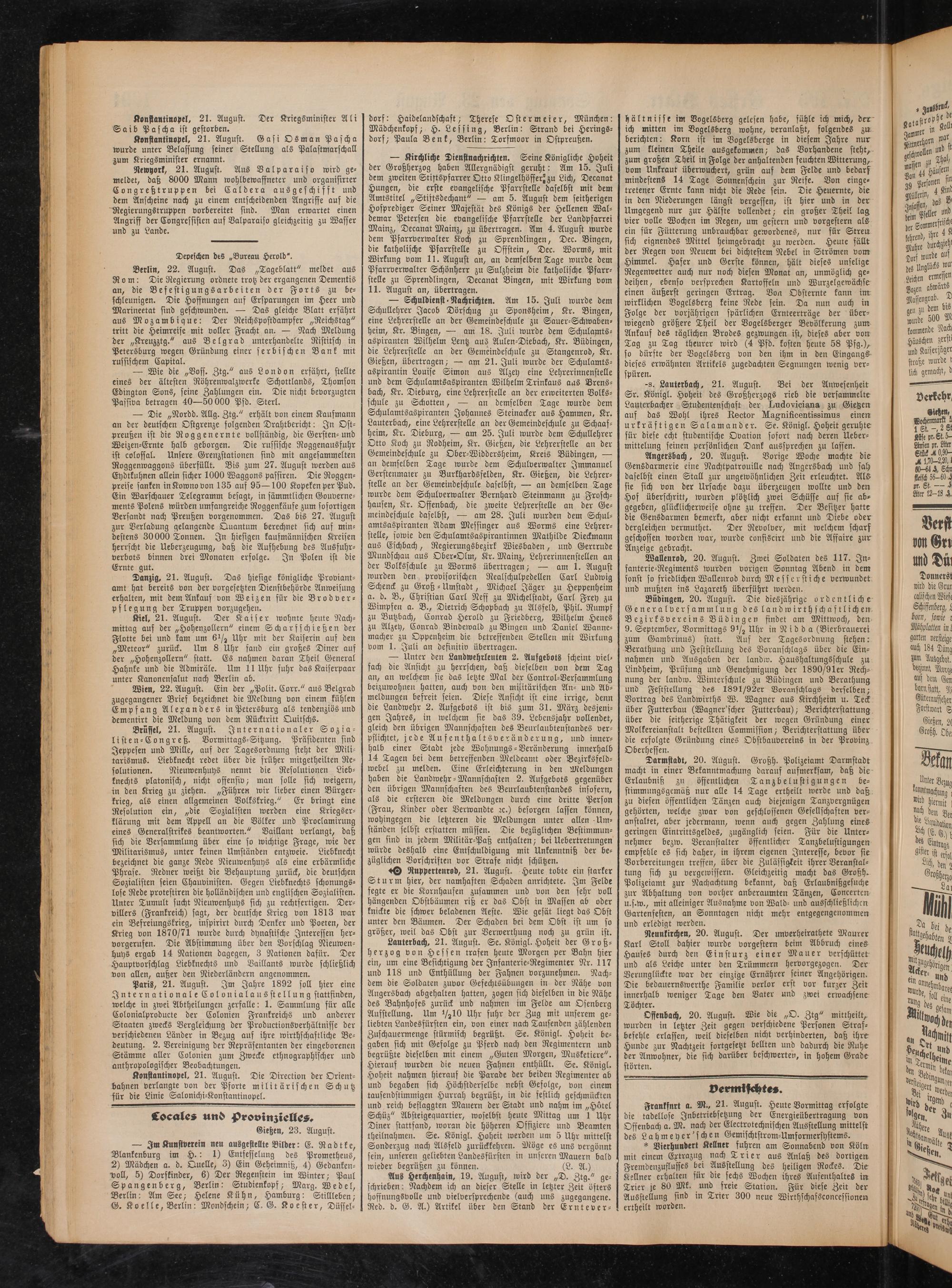Wallenrod, 20. August. Zwei Soldaten des 117. Infanterie-Regiments wurden vorigen Sonntag Abend in dem sonst so friedlichen Wallenrod durch Messerstiche verwundet und mußten ins Lazareth überführt werden.
