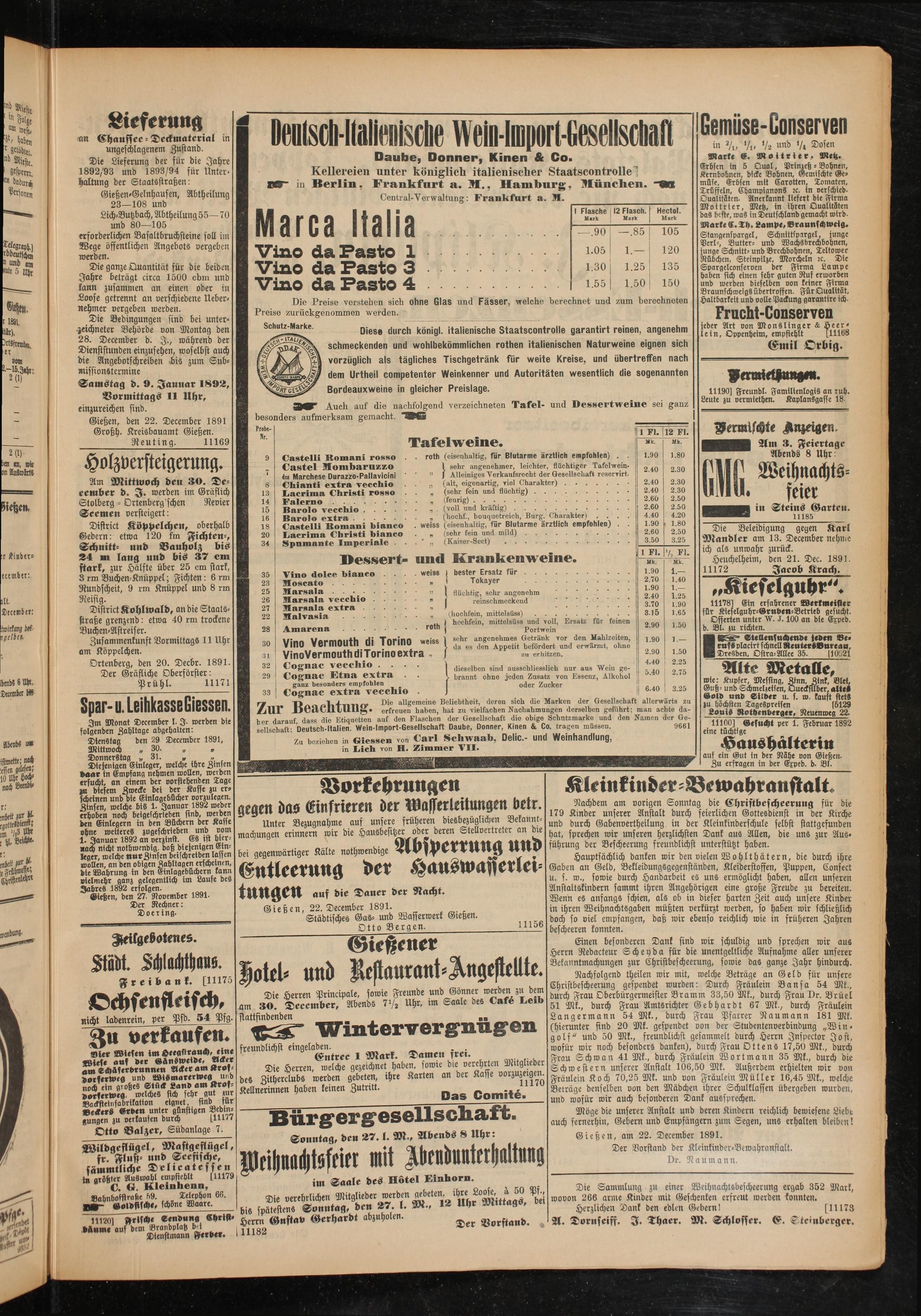 Dienstag den 29 December 1891, Mittwoch „ 30. „ „