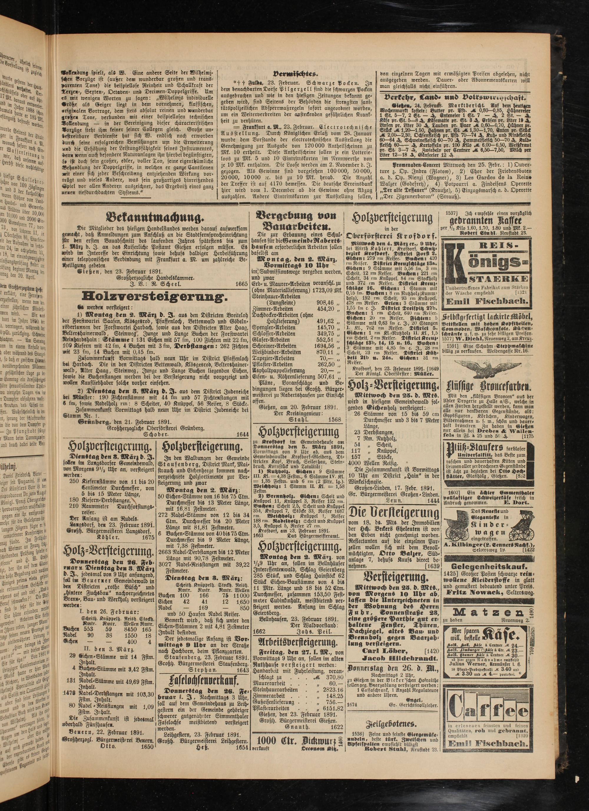 Gießen, den 23. Februar 1891. Großh. Bürgermeisterei Gießen.