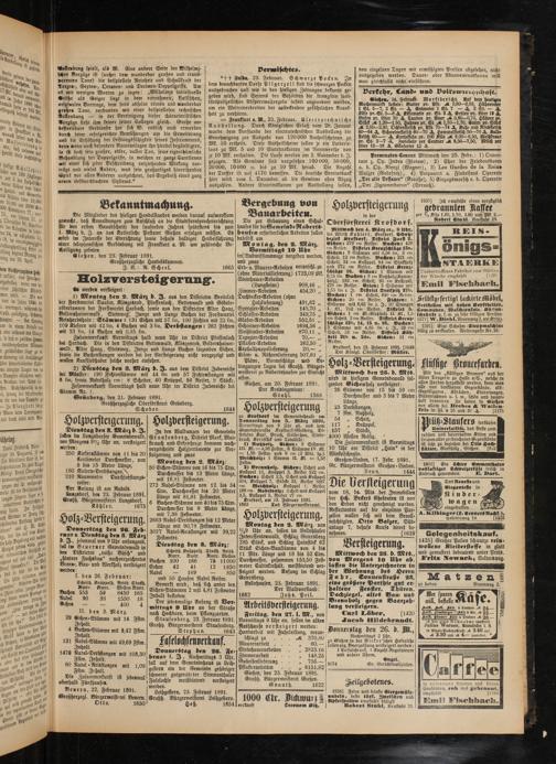 Krofdorf, den 23. Februar 1891. [1649 Der König!. Oberförster: Mütter.
