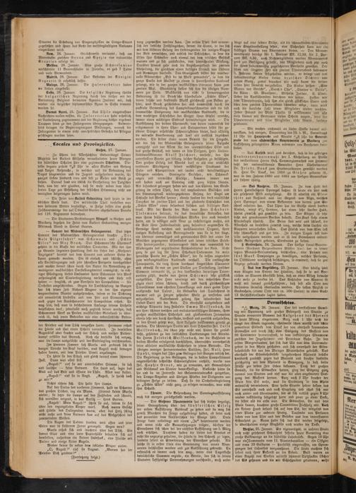 — Zu Ehren des Allerhöchsten Geburtstags Seiner Majestät des Kaisers Wilhelm veranstalteten heute Morgen die städtischen Schulen hier eine geziemende Schulfeier. Dieselbe begann präcis 1/a9 Uhr in allen Klaffen mit Gesang rind kurzer Ansprache, in welcher auf die Bedeutung des Trages hingewiesen und die Jugend ausgefordert wurde, ihr ganzes Leben hindurch treu und fest zu Kaiser und Reich zu stehen. Darauf fand wie üblich die Vertheilung der Taigscher "statt, von der wir glauben, daß sie wohl neben dem schulfreien Tage zur Erhöhung der festlichen Stimmung nicht am wenigsten beigetragen haben wird.