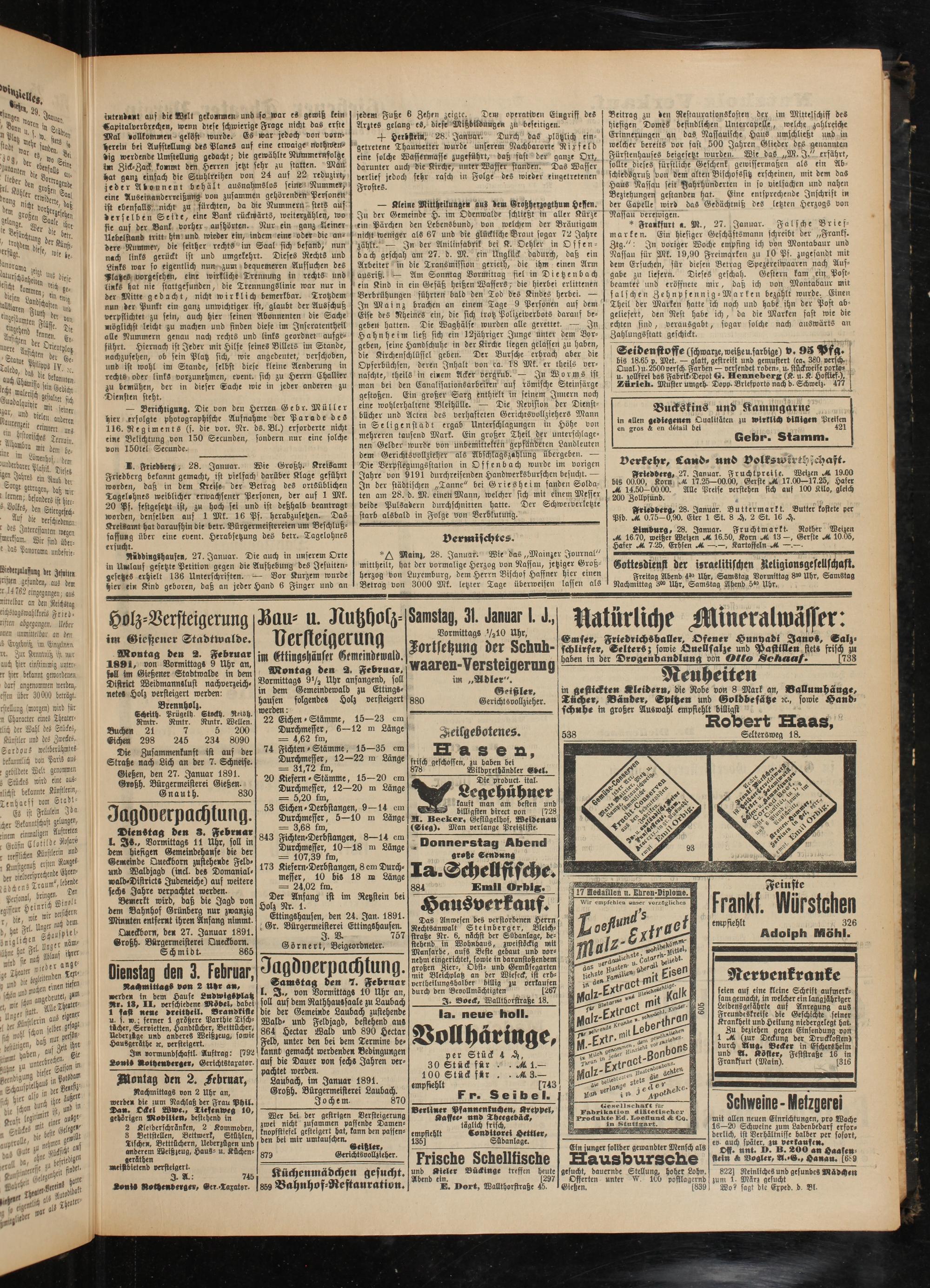 Gießen, den 27. Januar 1891. Großh. Bürgermeisterei Gießen.