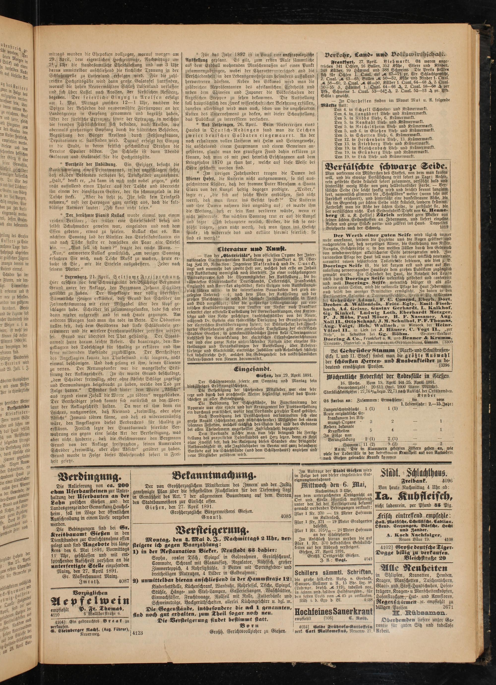 Die Bedingungen sind bei «r. KreiSdauawt Gießen in den Dienststunden zur Einsichtsnahme offen gelegt und sind Angebote bis längstens den 6. Mai 1891, Vormittags 11 Uhr, geschloffen und mit entsprechender Aufschrift versehen an die unterfertigte Stelle einzusenden.