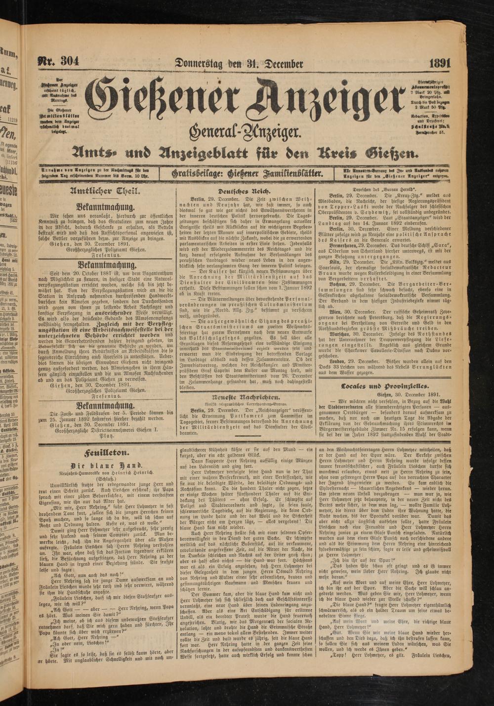 Gießen, 30. December 1891.