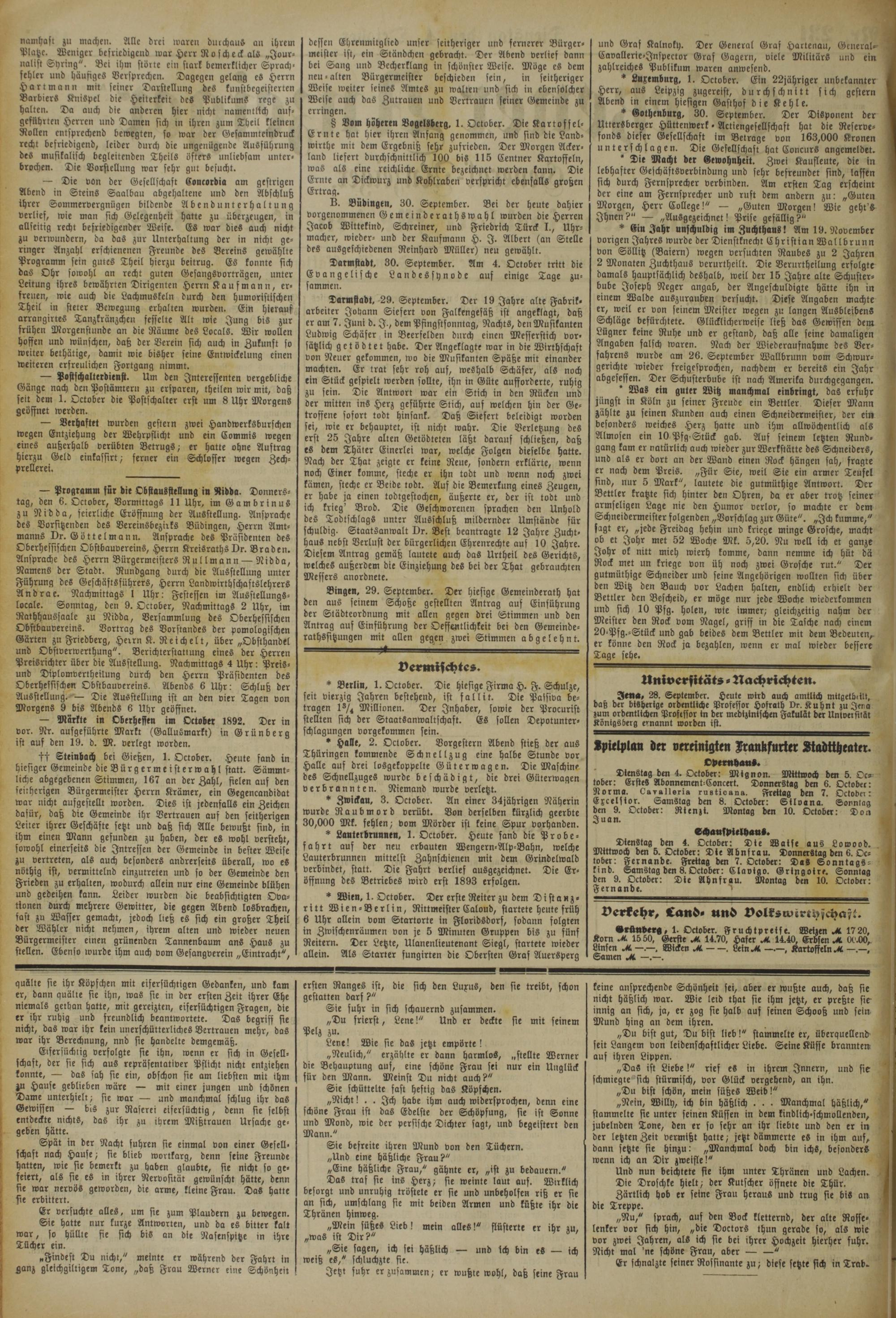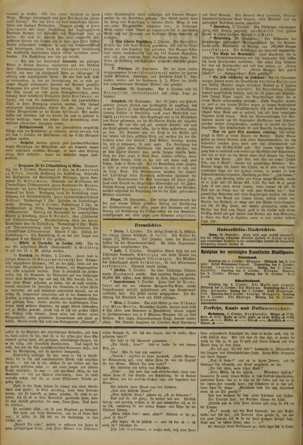 — Märkte in Oberhessen im October 1892. Der in vor. 9hr. ausgesührte Markt (Galluömarkt) in Grünberg ist aus den 19. d. M. verlegt worden.