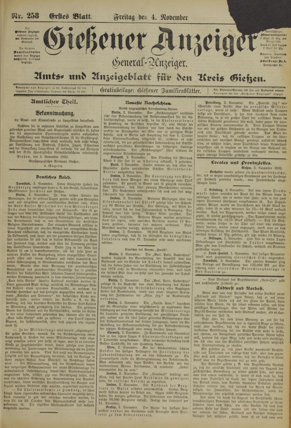 Die Gießener Aamitien ötalter werden dem Anzeiger w-chentlich dreimal be,gelegt.