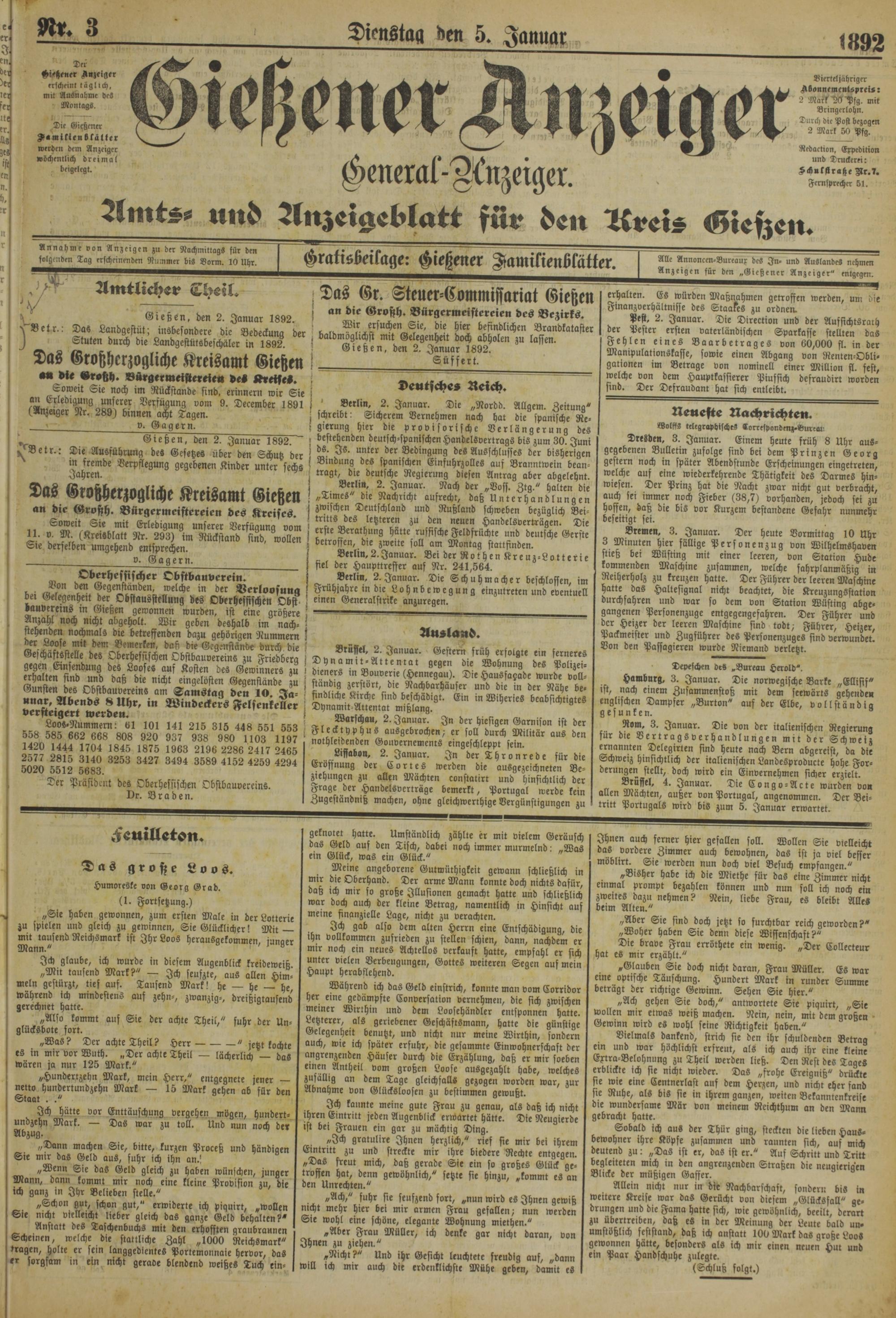 v Gießen, den 2. Januar 1892.