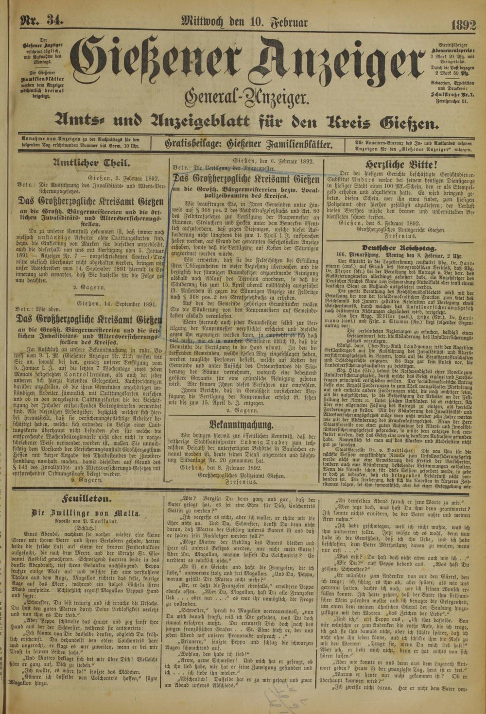 Das Großherzogliche Kreisamt Gießeä an die Grotzh. Bürgermeistereien und die ort» lichen Jnvaliditäts und Altersversicherungsstellen des Kreises.