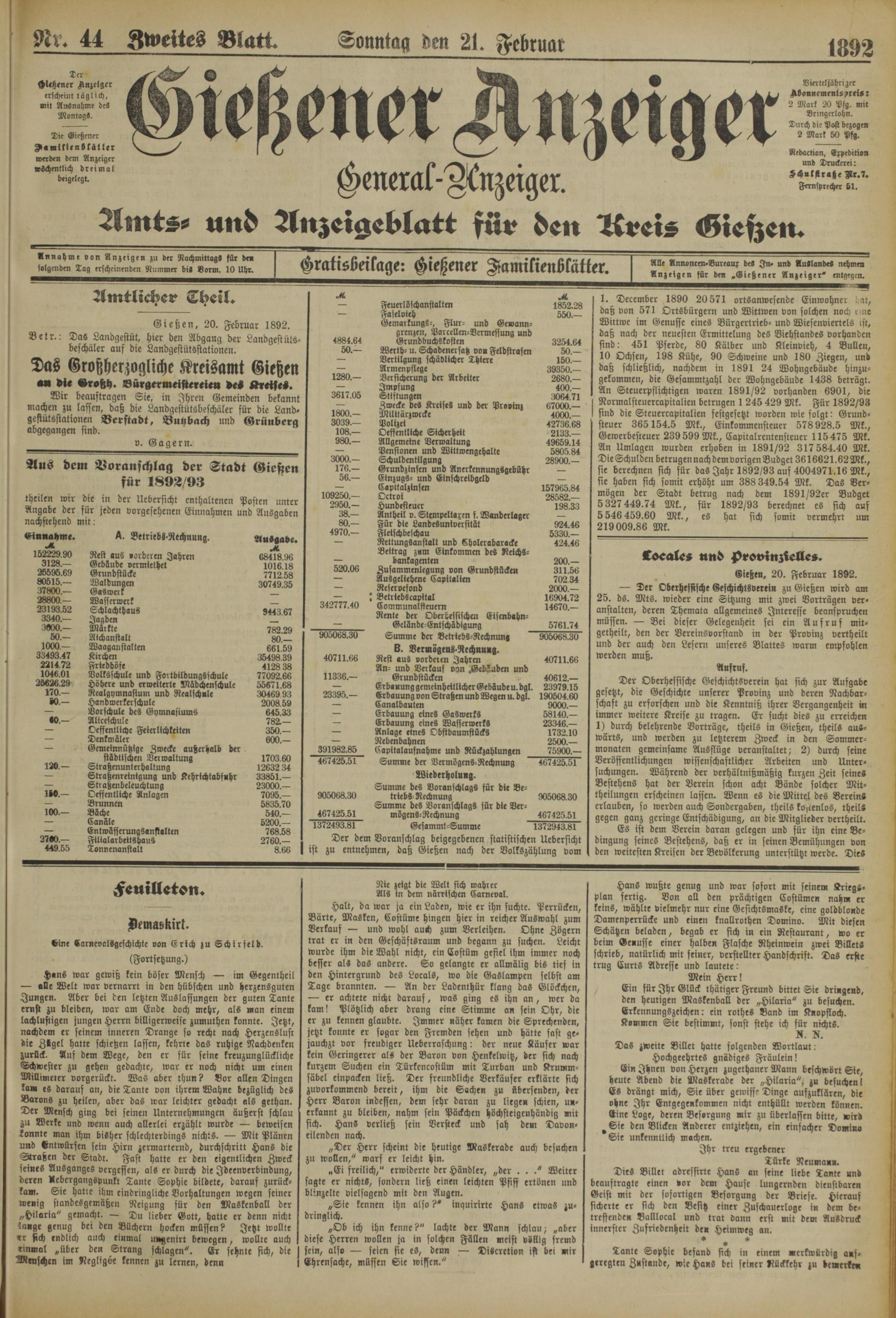 Gießen, 20. Februar 1892.