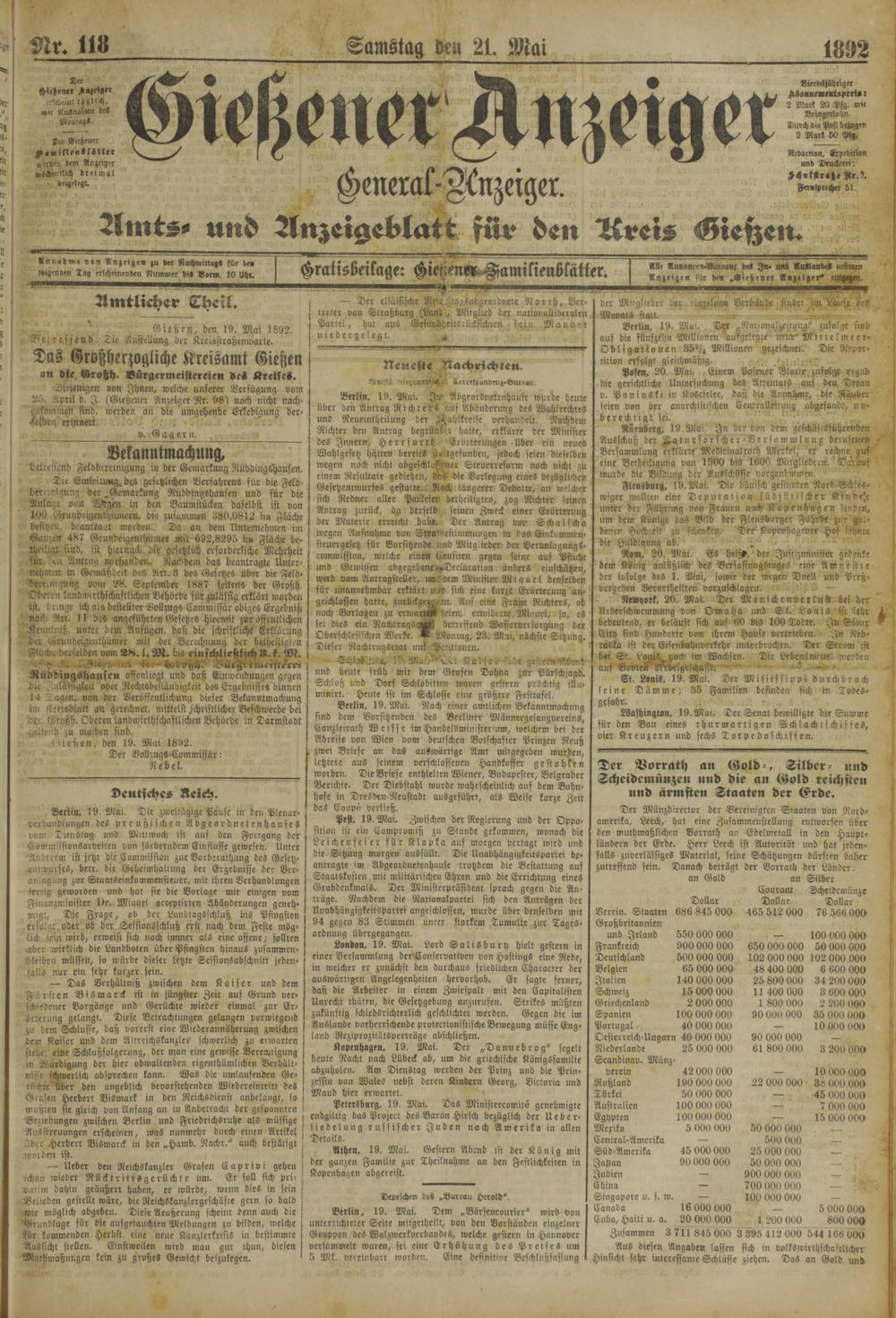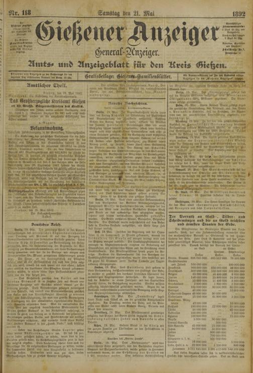 Xie Gießener F»««ikienötätter Kksben dem Anzeiger wöchentlich dreimal deigelegt.