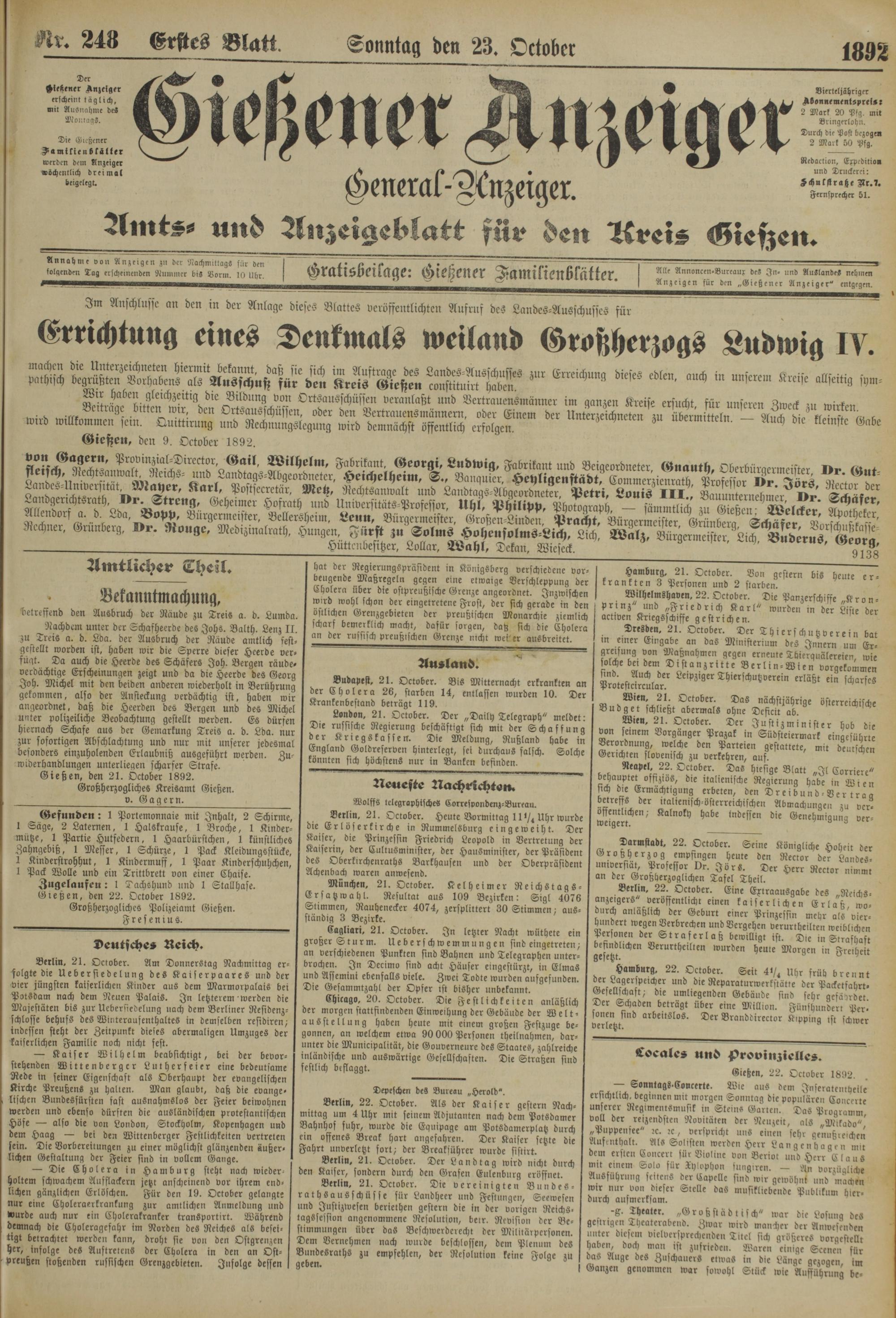 Gießen, 22. October 1892.