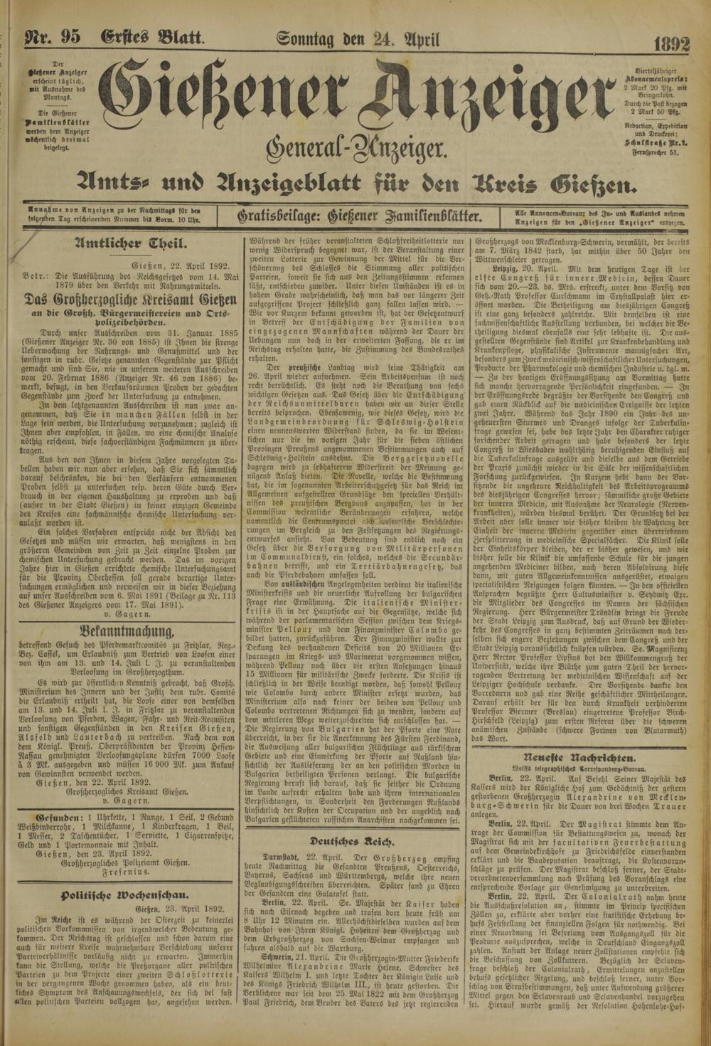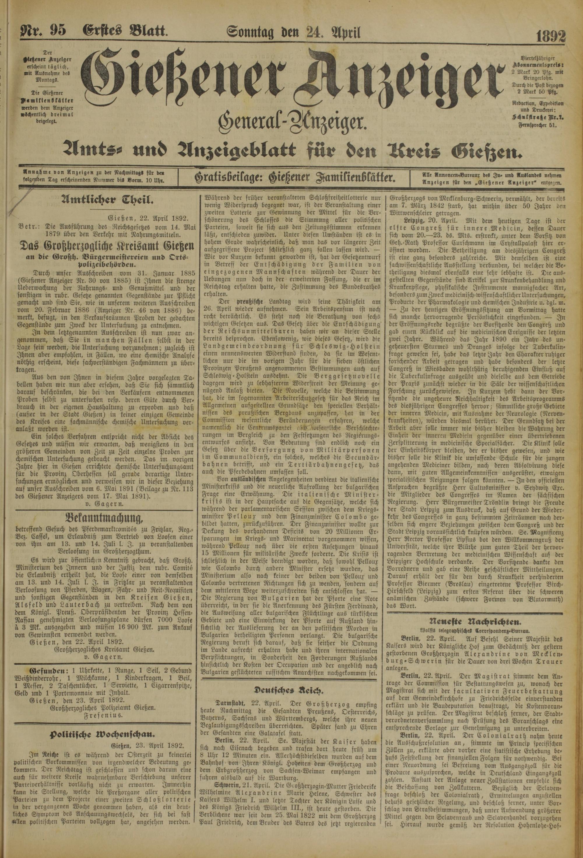 Gießen, den 23. April 1892.