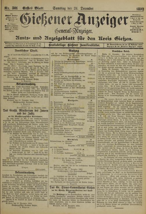 Gießen, den 17. December 1892.
