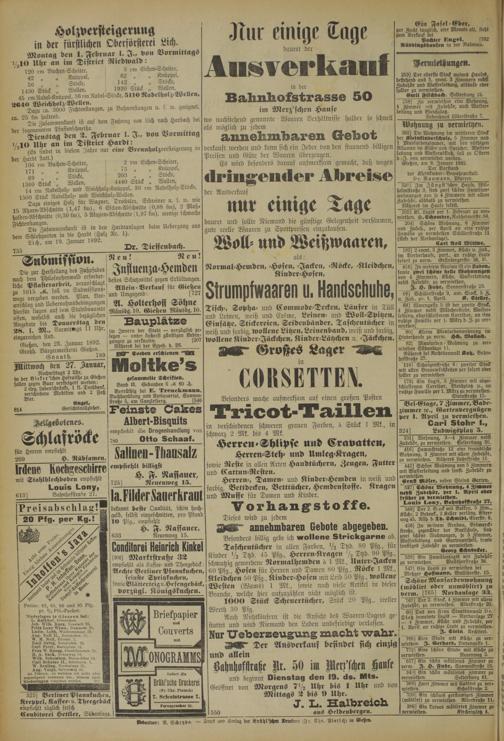 verkauft werden und kann sich ein Jeder von den staunend billigen Preisen und Güte der Waaren überzeugen.