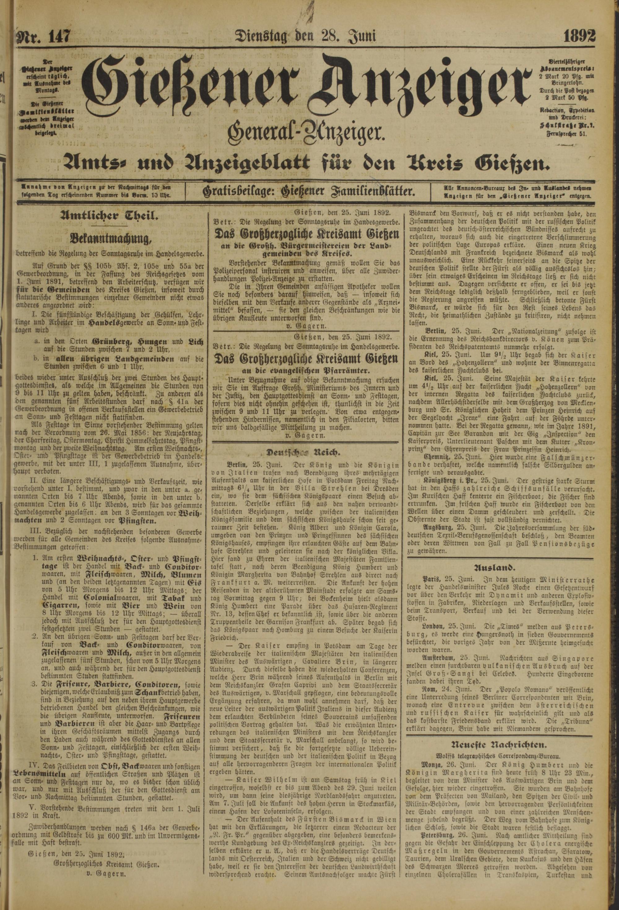 Gießen, den 25. Juni 1892.