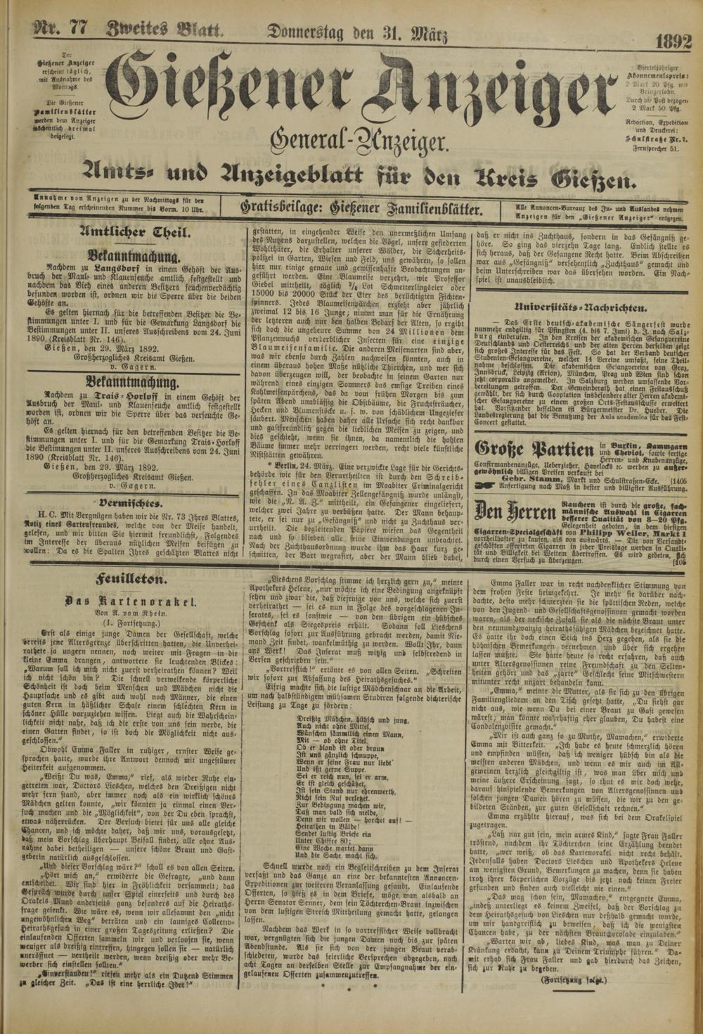 Gießener Anzeiger erscheint täglich, mit Ausnahme des MonlagS