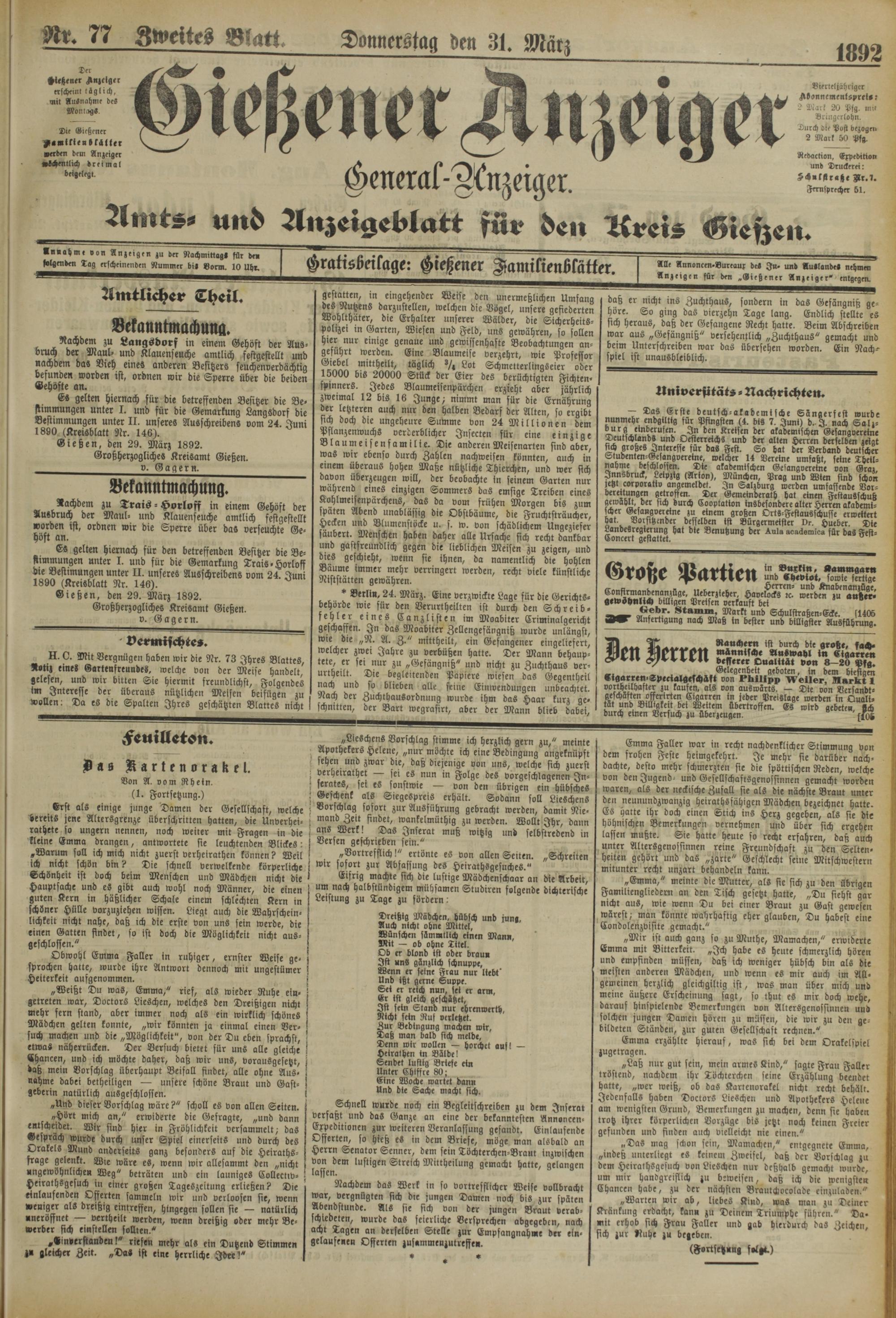 Alle Aanoncen-Bureaux deS I«. und Auslandes nehm« Anzeigen für den „Gießener Anzeiger* entgegen.