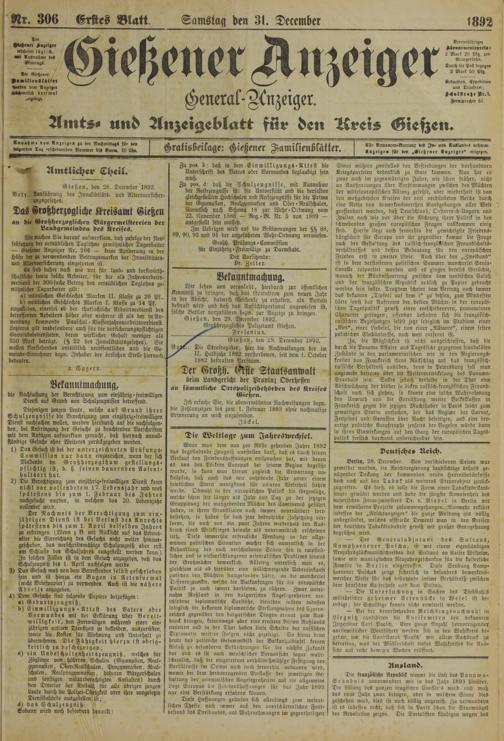 Alle Lnnoacm-Bureaux beS In» und Au-landc- nehme» Anzeigen für den „Gießener Anzeiger^ entgegen.