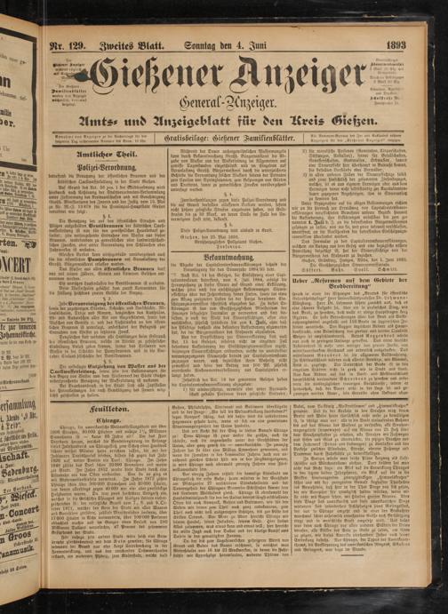 Gießen, Grünberg, Hungen, Nidda, den 1. Juni 1893. Die Grobherzoglichen Steuercommissariate.