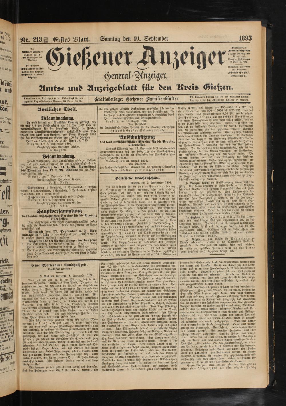 N. Aus der Wetterau, 8. September 1893.