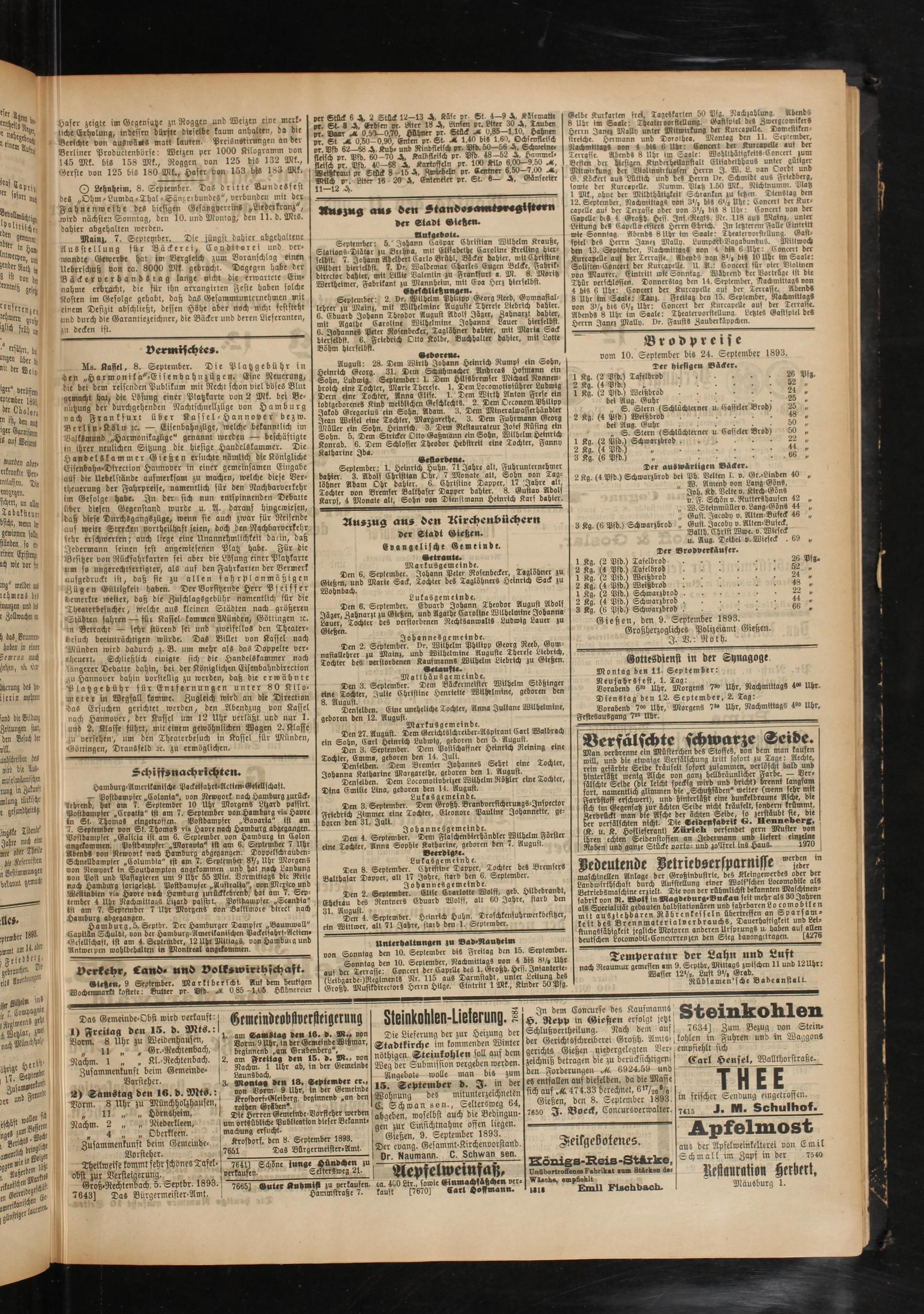 3 Kg. (6 Psd.) Schwarzbrod r Gießen, den 9. September 1893.