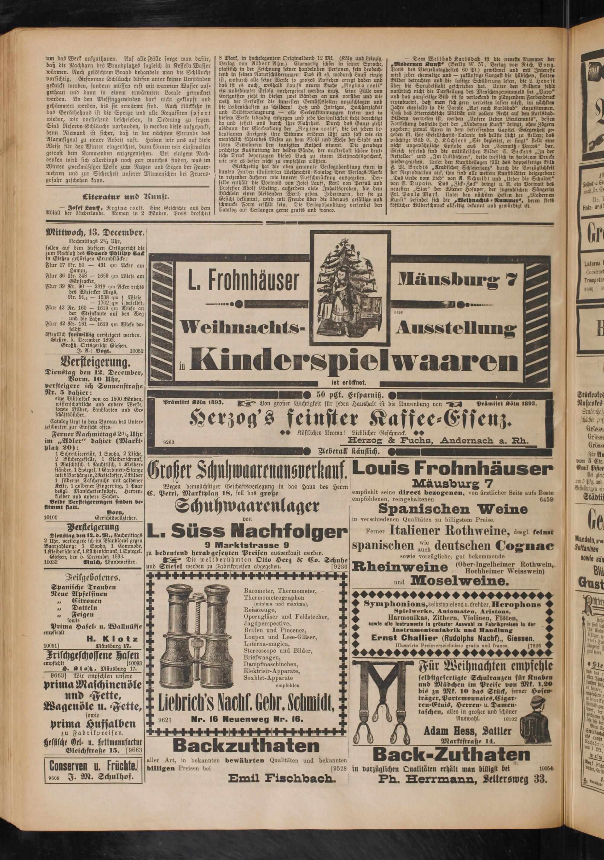 öffentlich freiwillig versteigert werden. Gießen, 5. December 1893.