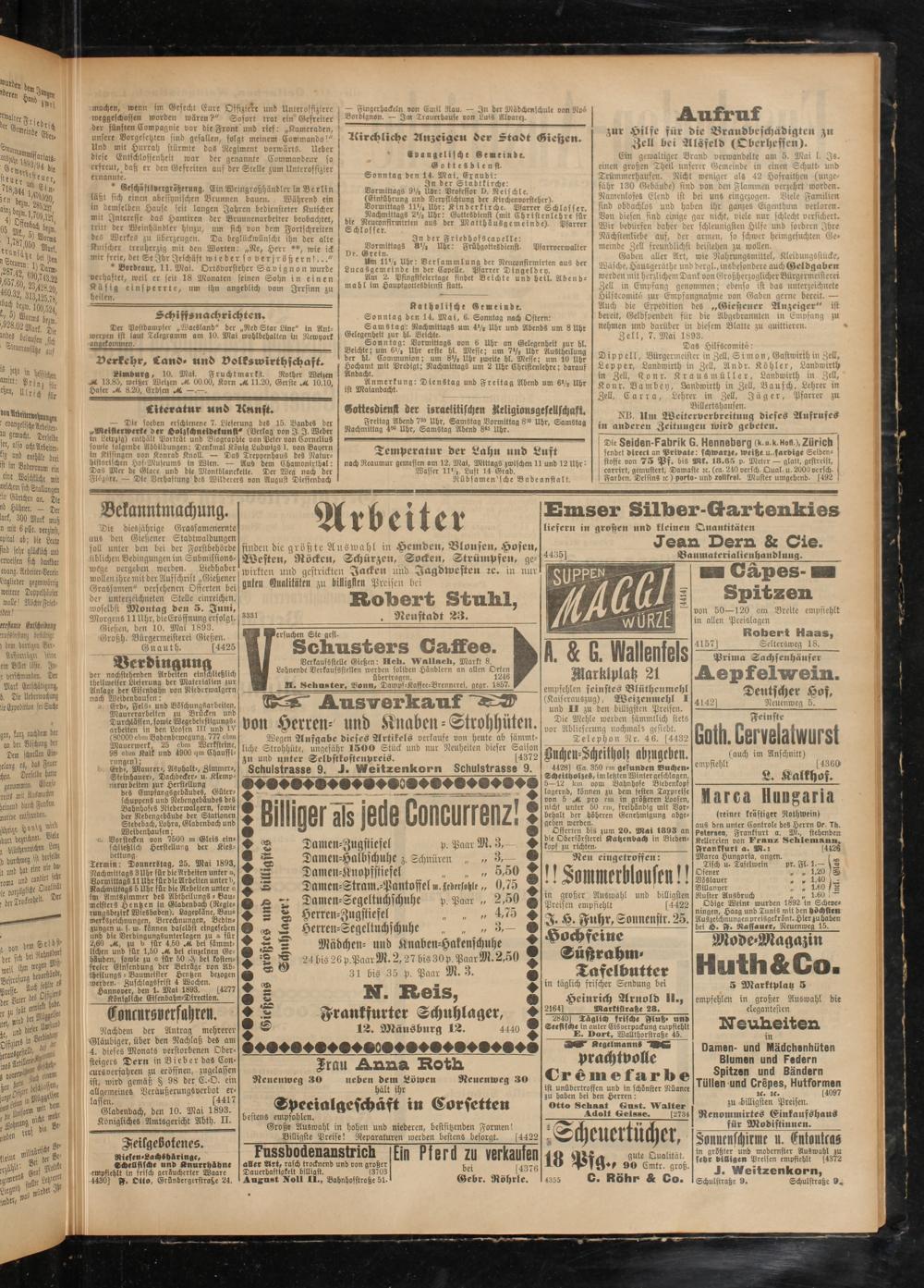 Gießen, den 10. Mai 1893. Großh. Bürgermeisterei Gießen.