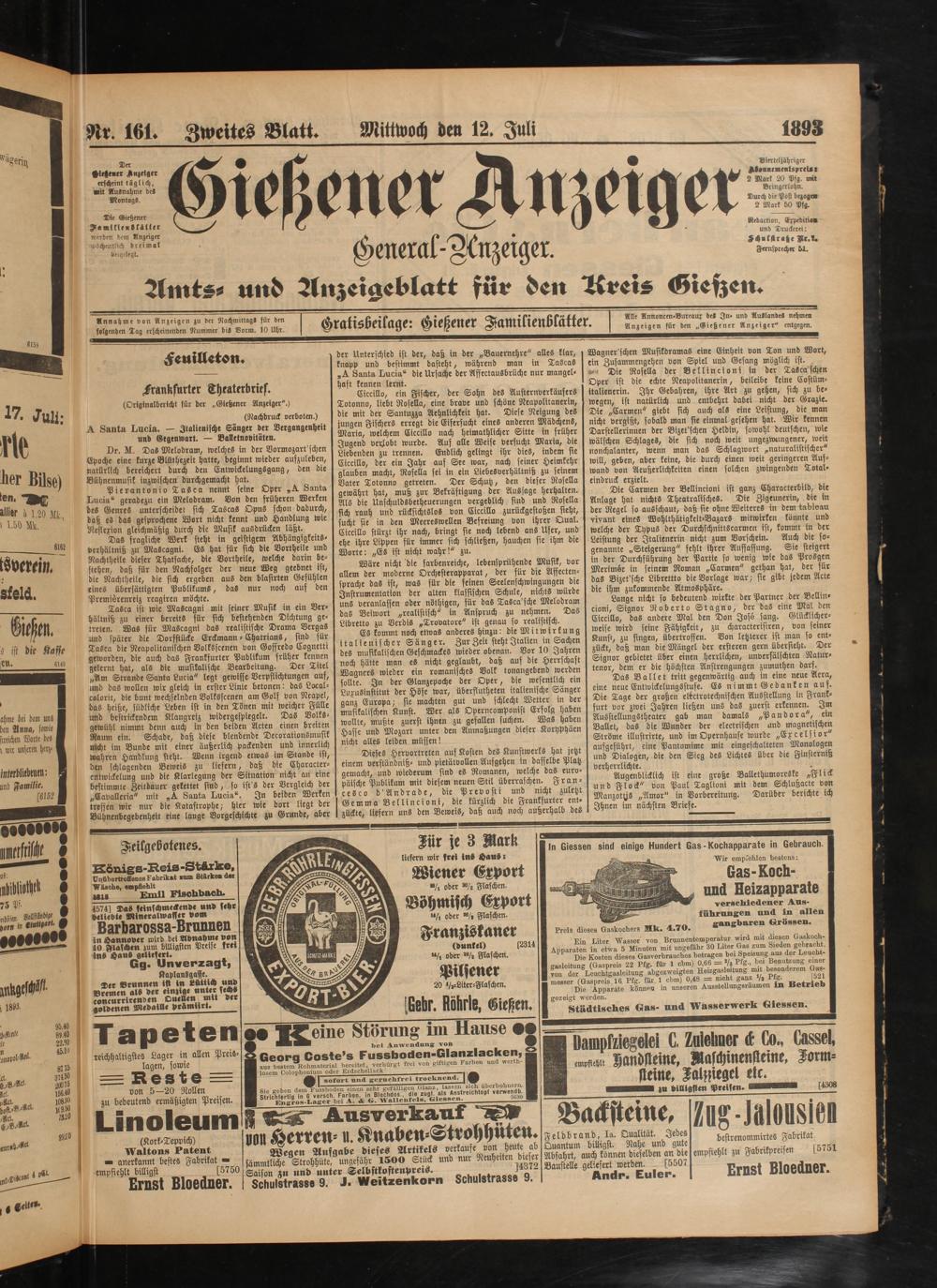Nr 161. Zweites Blatt. Mittwoch den 12. Juli